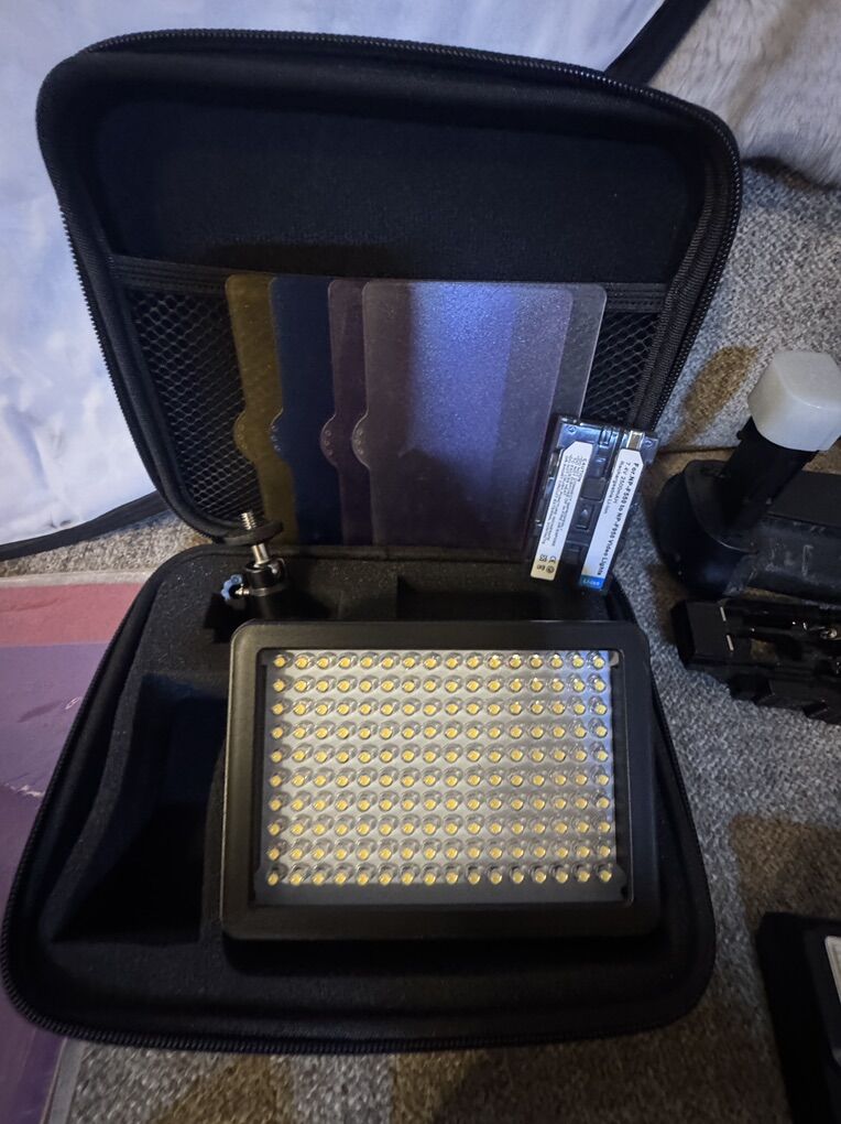 $16 - Small LED light LimoStudio 216 LED Video Light for Digital DSLR Camera, Camcorder, High Brightness Lumen Value, Dimmable Switch with Color Filter Gel, Battery & Charger, AGG1318 Asking price - $12