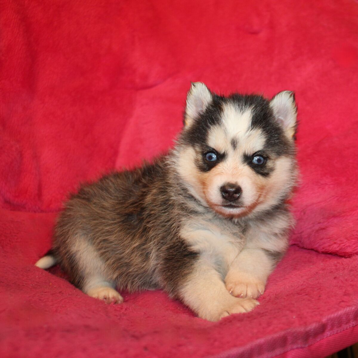 We have 4 puppies available, male and female, 50/50 pomsky! Ready to go now but I don’t mind holding them longer if needed.