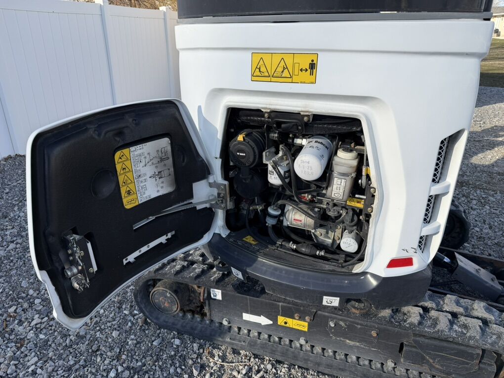 2021 Bobcat E20, equipped with a hydraulic thumb. It has just under 1,300 hours. All suggested maintenance has been done on time and has been greased regularly. It has a quick coupler for ease of changing buckets. Includes a 39“ grading bucket, 20 and 12 trenching buckets. Teeth are included but not shown. Everything runs and works properly.