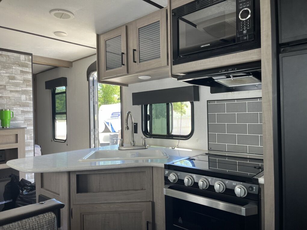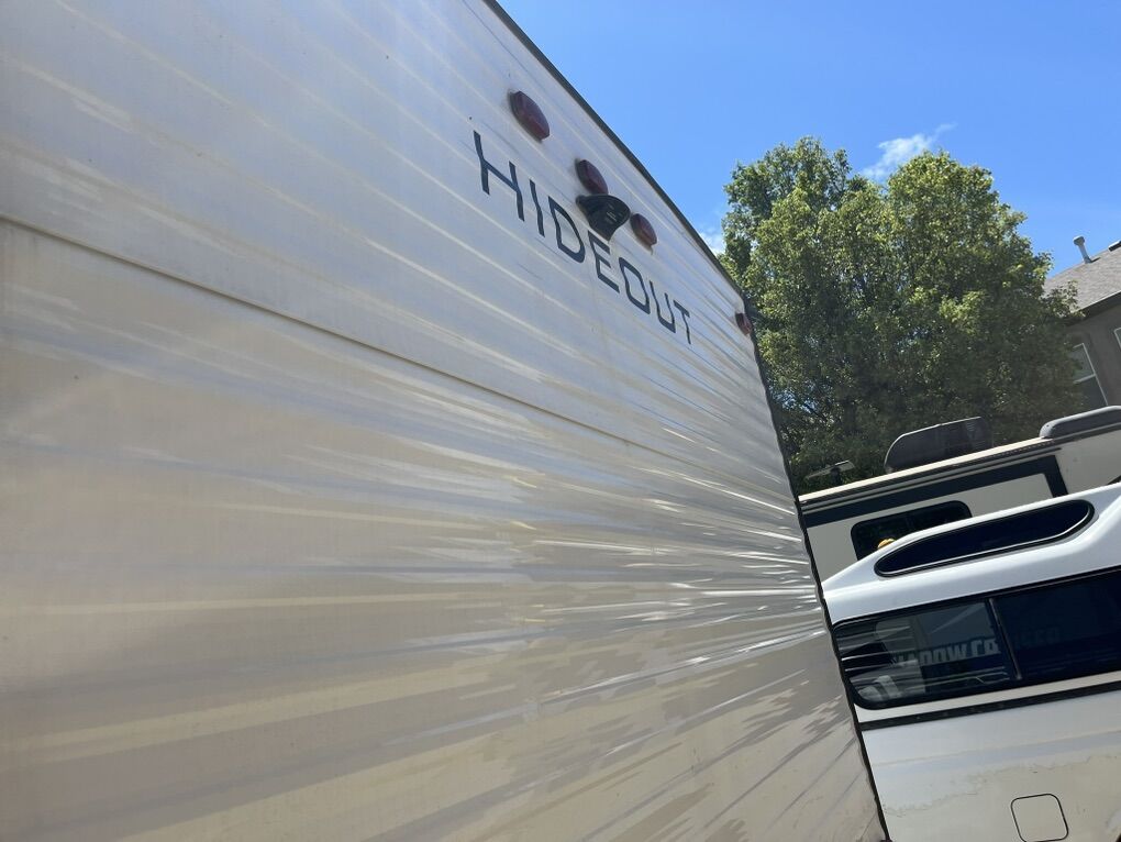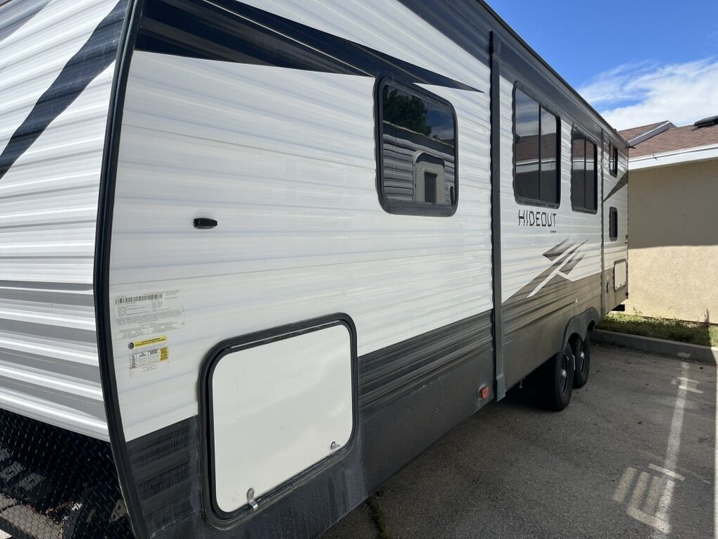 We bought this brand new back in 2020. We have taken this out a handful of times. Has 2 new batteries, and tires were replaced 2 years ago. We have really enjoyed our home away from home and sad to have to let it go. Our kids are older now and do not go out with us like they used to and we are needing to downsize. It is 26’ long with 4’ tongue. It can sleep 6-8. Holds 40 gallons of fresh water. The hinge on the refrigerator has broken, however we have fixed it with epoxy and has a really strong hold. The switch for the electric jack broke from a basketball, there is a hand crank that is actually quite easy to use.