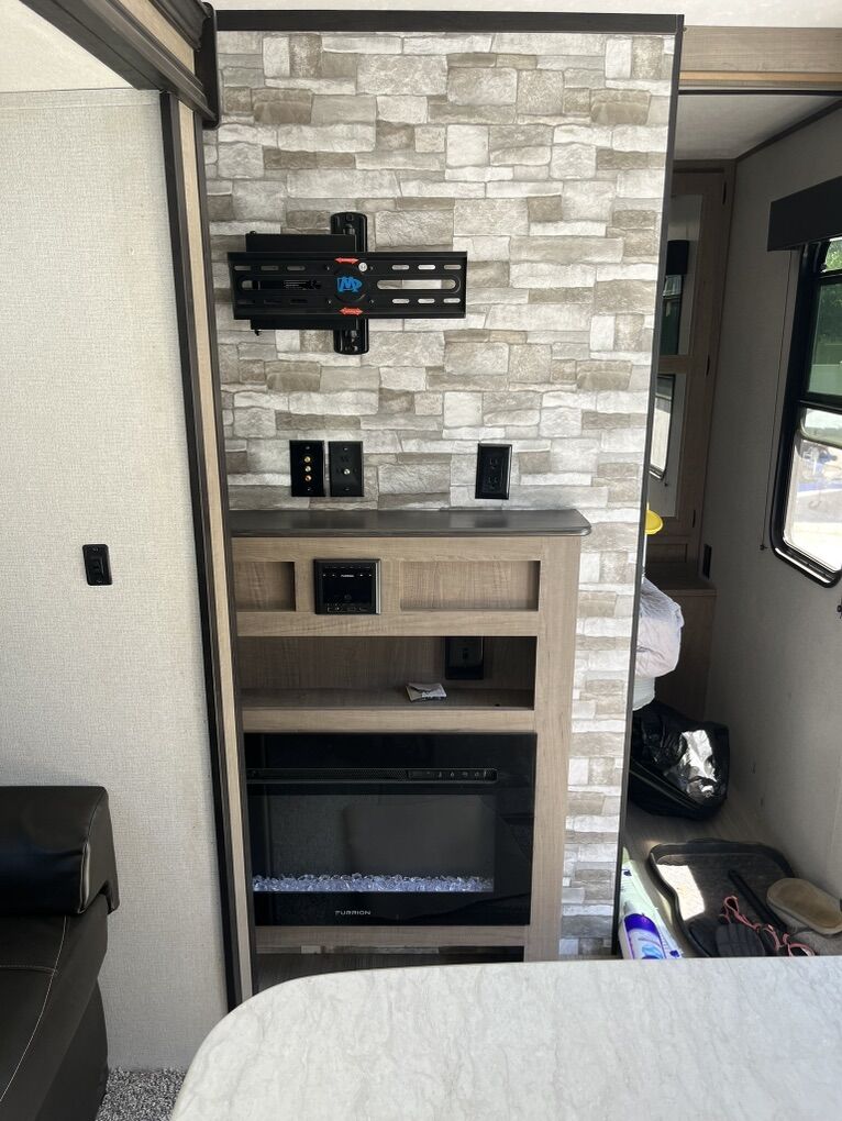 Includes: 2 batteries 2 propane tanks Hydraulic stabilizers Has an electric fireplace Original short queen mattress for master bedroom. We are including the foam pads we bought to go on top of the mattress. We are also including the 32”smart tv we bought for the trailer as well, with wall mount.