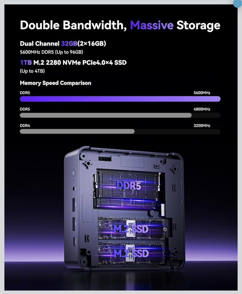 ZelleKAMRUI AM21 Mini PC, AMD Ryzen 7 up to 3.9GHz), 16GB DDR5 5600MHz RAM, 512GB M.2 2280 PCIe 4.0 SSD, Mini Desktop Computer with Radeon 7, USB4, Quad Display, Dual LAN, HDMI, WiFi 6