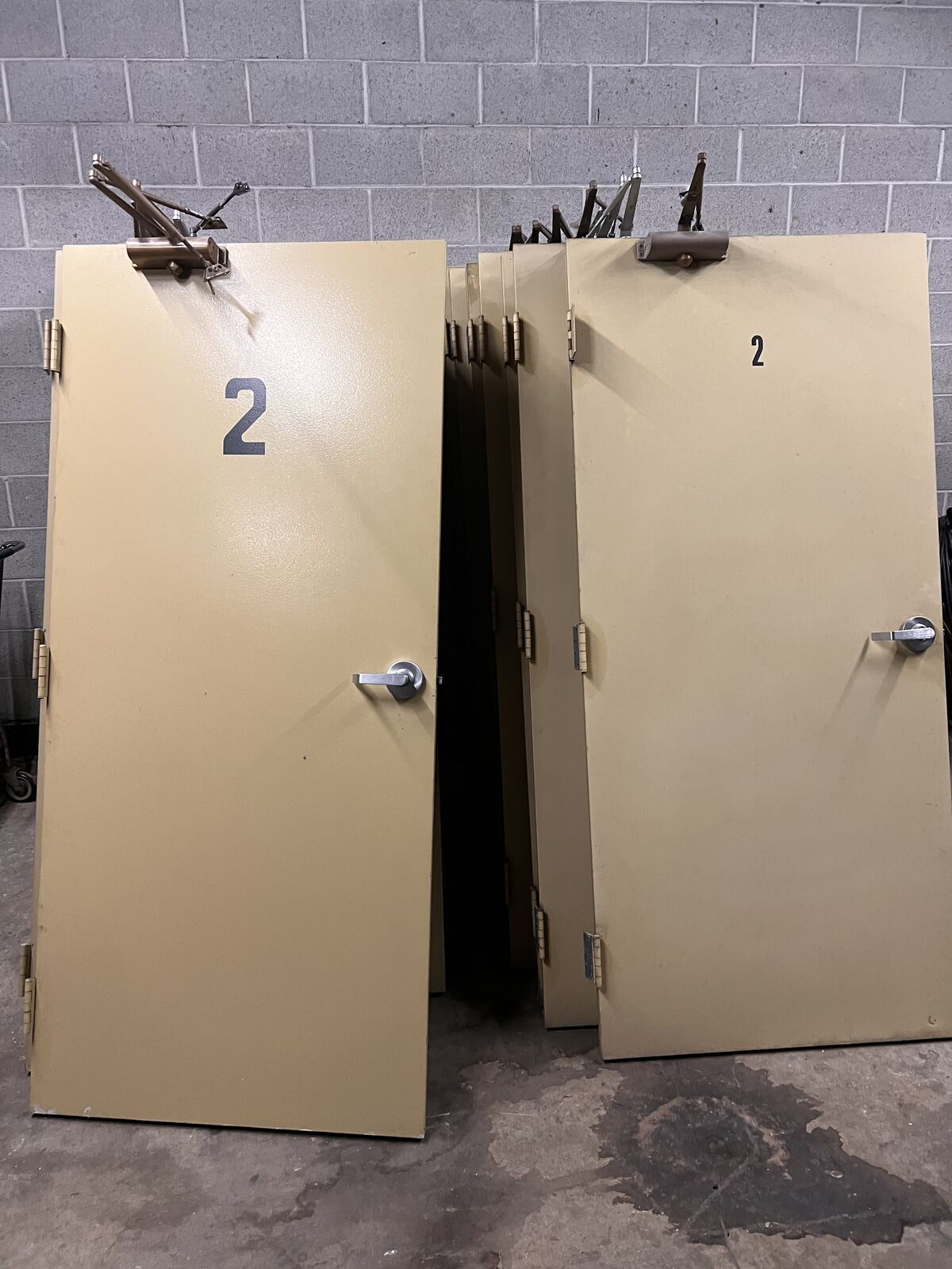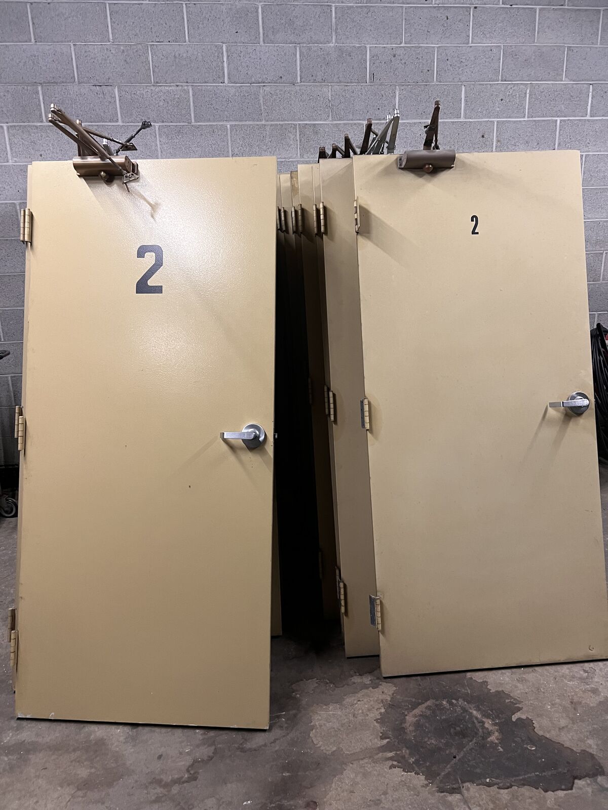 ApplePay36x80 heavy duty metal door. (Slab only no doorframe) It includes door handle and(3) 4” hinges. And most have a door closing mechanism. I have 30 of them.