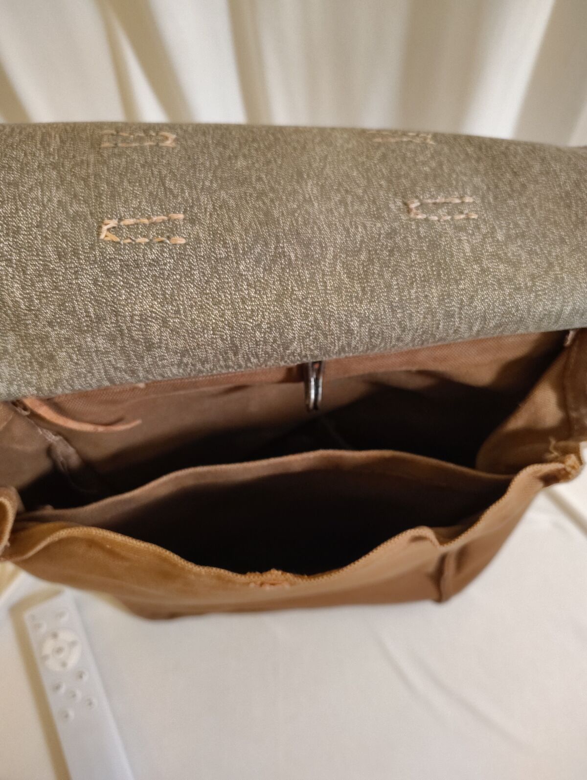 The stain can also be covered with sewn-on fabric or a patch, which could give the bag a unique custom look.