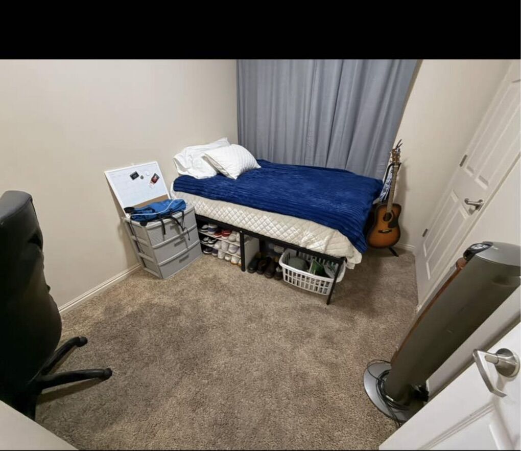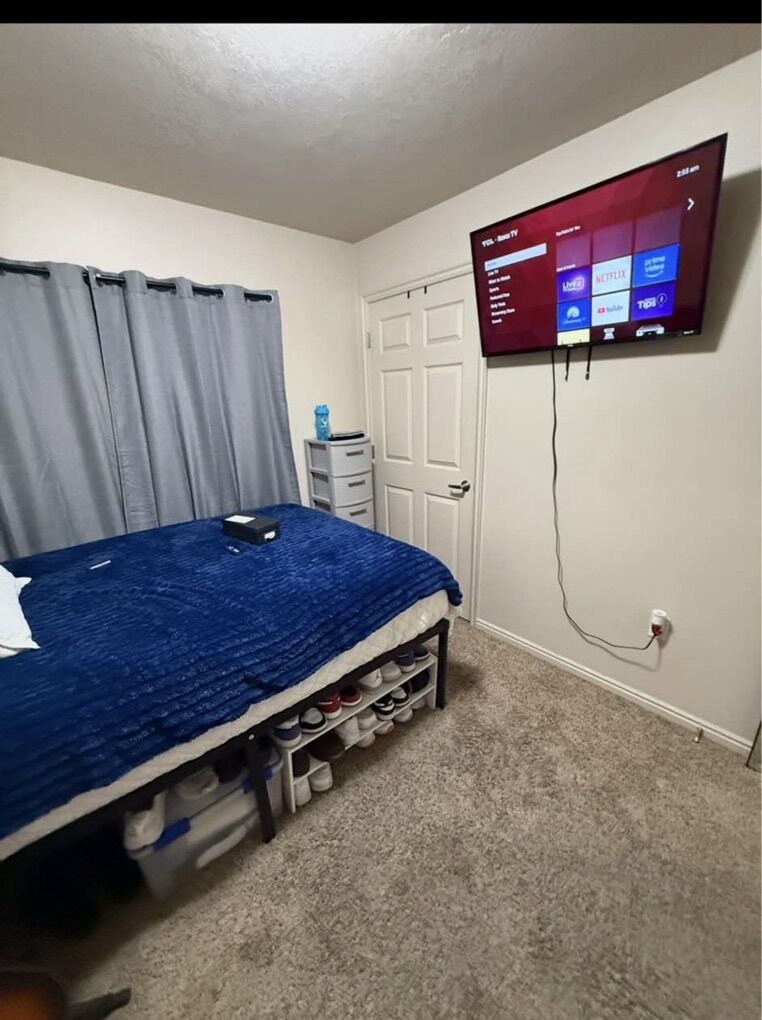 I I bought a bed for this room. It’s a full and I’m willing to let the new renter keep it and the bed frame along with the blackout curtains and Tv wall mount I bought for the room. If you don’t want the full bed, they also have a twin bed in storage on site. ( see last couple pictures for my specific room!)