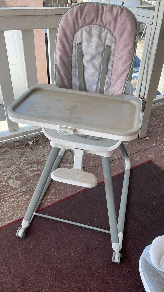 High chair recommended for children 6 months and older. Comes with various accessories, is in very good condition, and is very versatile . I accept cash, Venmo, or Zelle.
