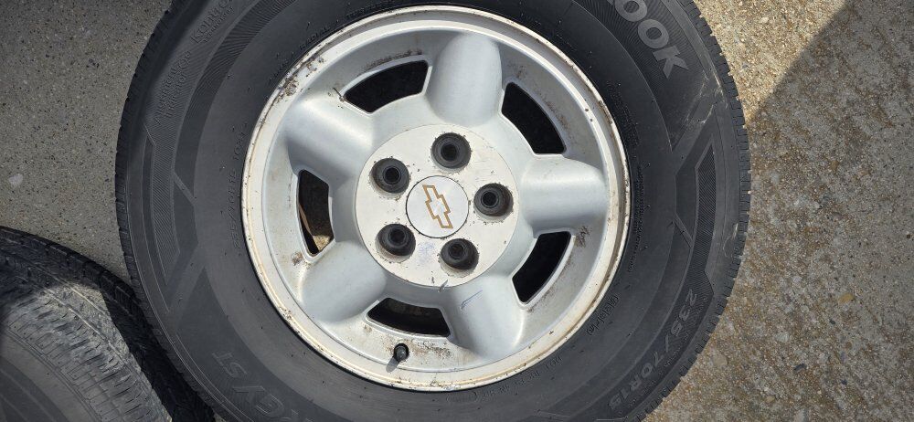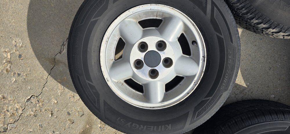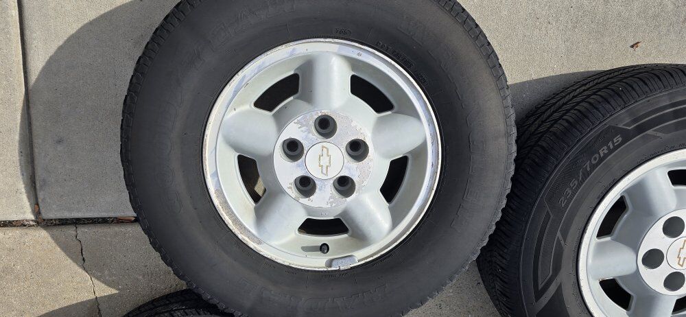 ZelleFull set of wheels and tires, came off a Chevy Blazer. They can be used on a GMC Jimmy, GMC Sonoma, Chevy S10, and more, (anything GM in the early to late 90's basically).