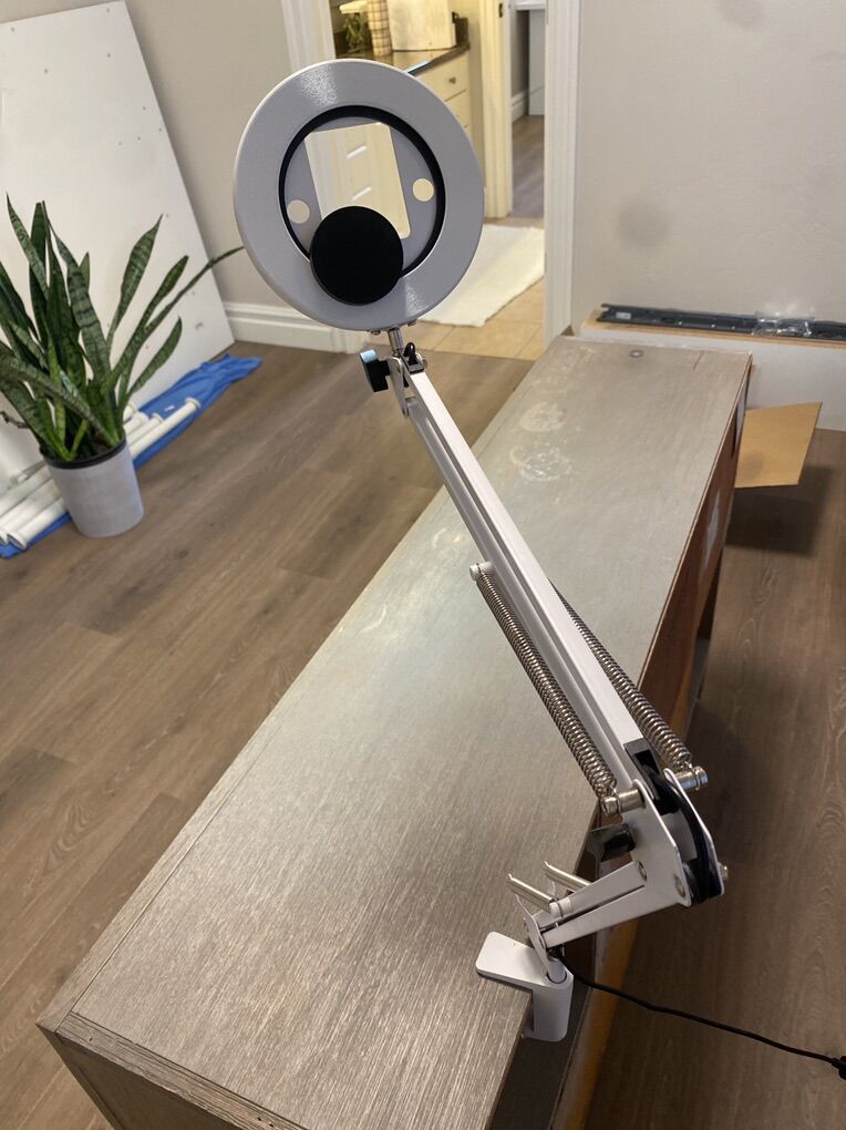 VenmoWhite, LED, articulating work light, adjustable light modes, magnetic phone mount for camera.