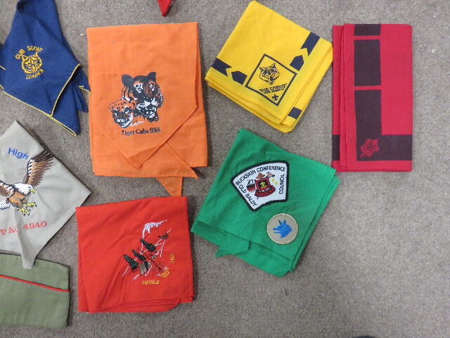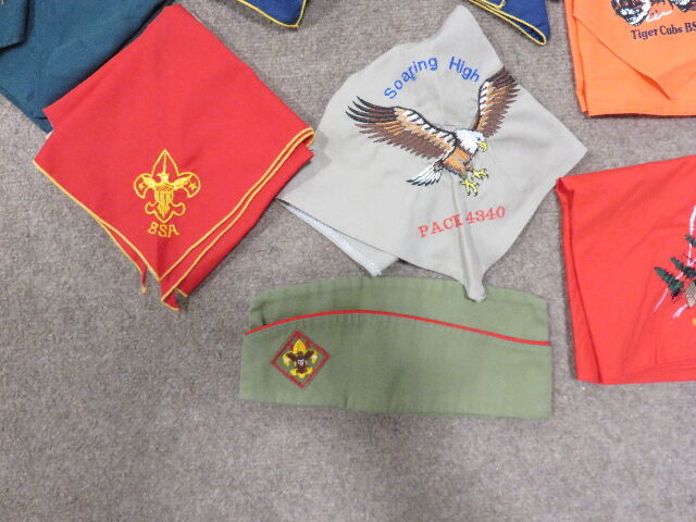 If you look online, these neckerchiefs individually run from $3.00 - $5.00, to over $15.00 each for the unique specialty ones. Just the 1970's BSA Scout Hat runs almost $20.00 on a couple of sites. Therefore, my asking price of $25.00 TOTAL FOR EVERYTHING seems very fair.