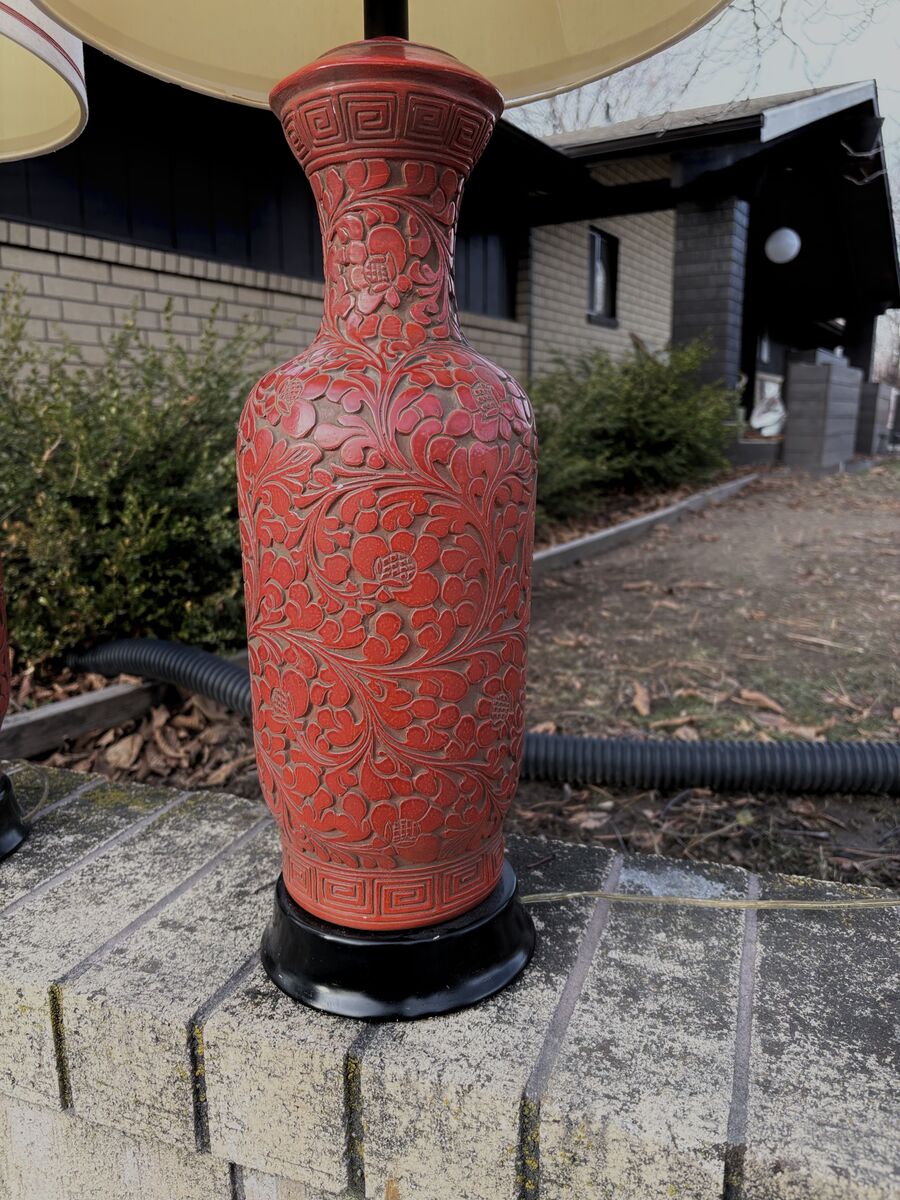 VenmoBeautiful PAIR of vintage mid century lamps. Fantastic color and design. Big, bold and beautiful!! both include their great original lampshades. $180 for the pair