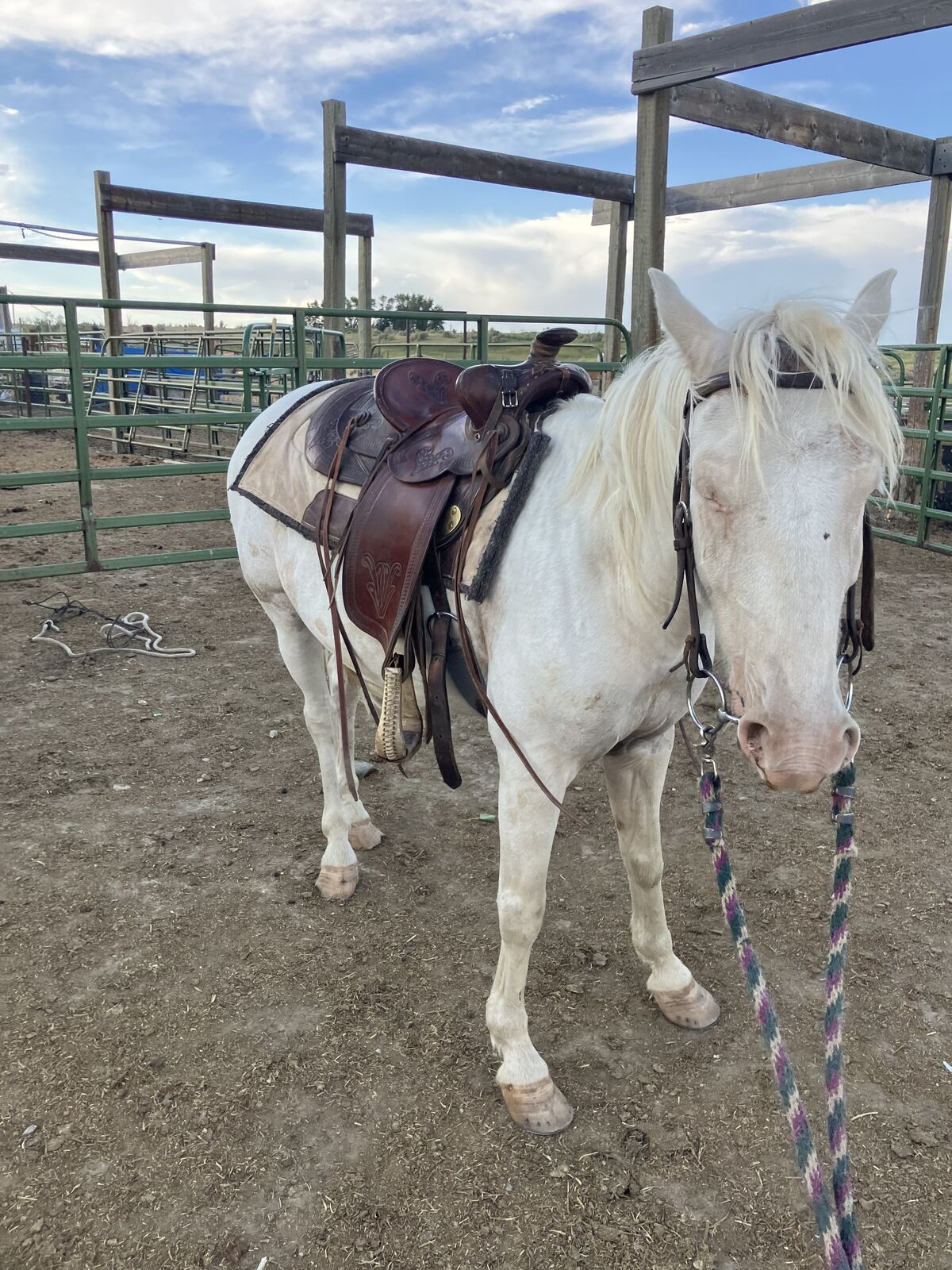 4 yr old gelding been rode to push cows by my 17 yr old daughter. I would say green, but mostly just needs riding time- nice size for small riders. Walks out really good in the field. He comes to grain in the field. About 14 hands