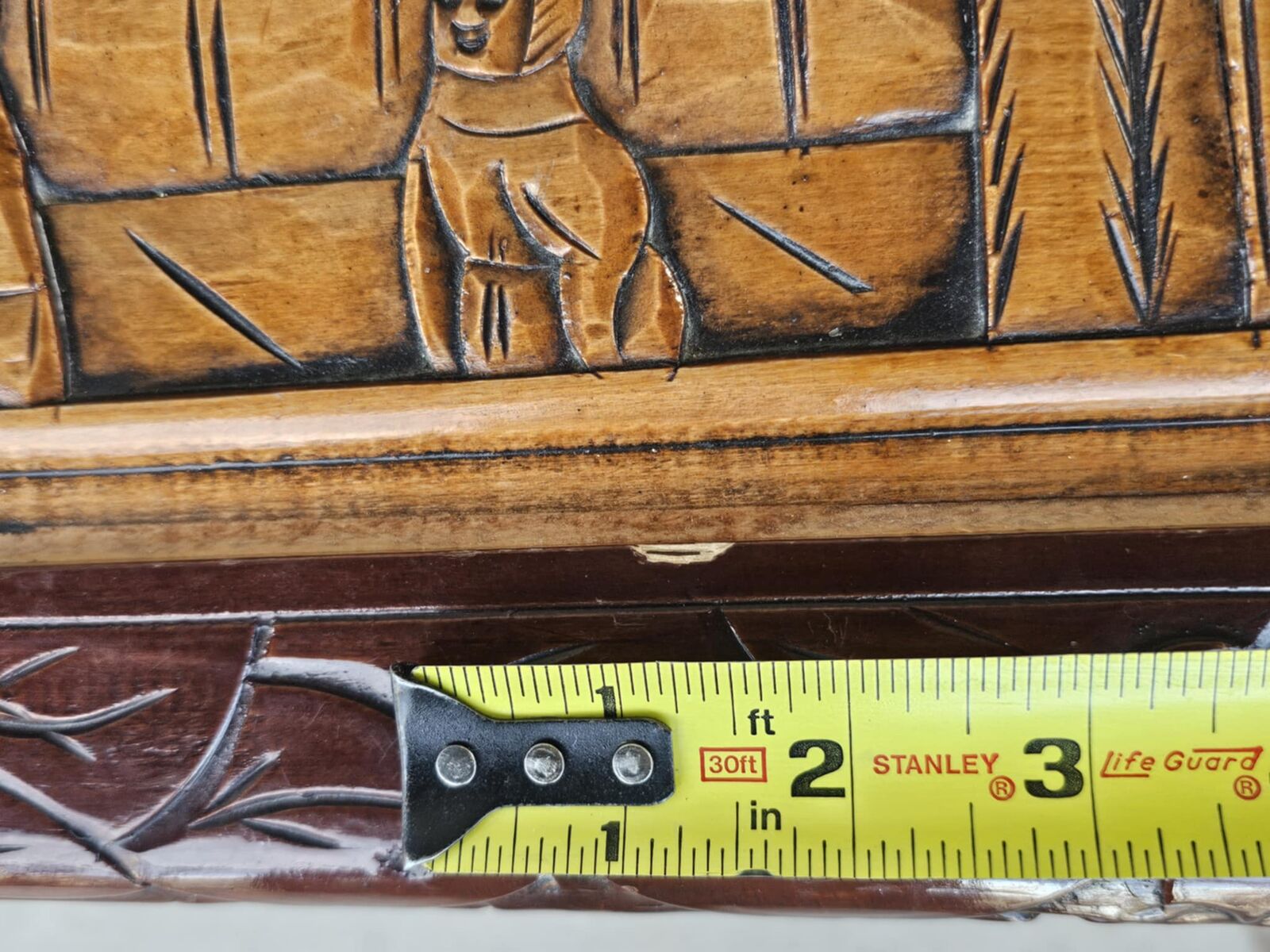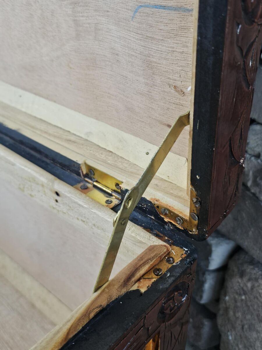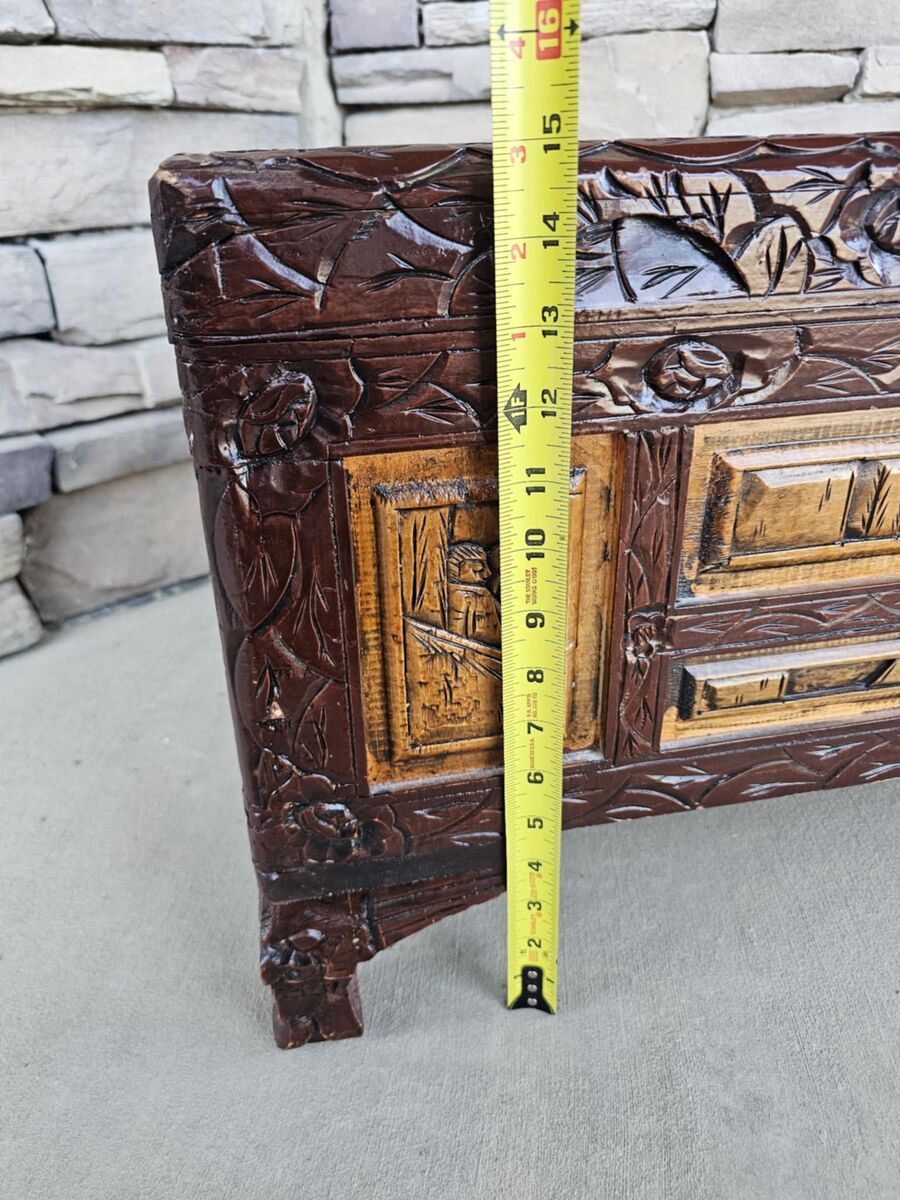VenmoVintage Carved Wooden Storage Chest / Trunk – Asian Motif, Brass Hardware