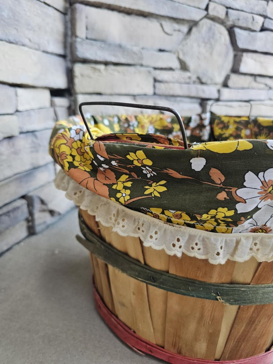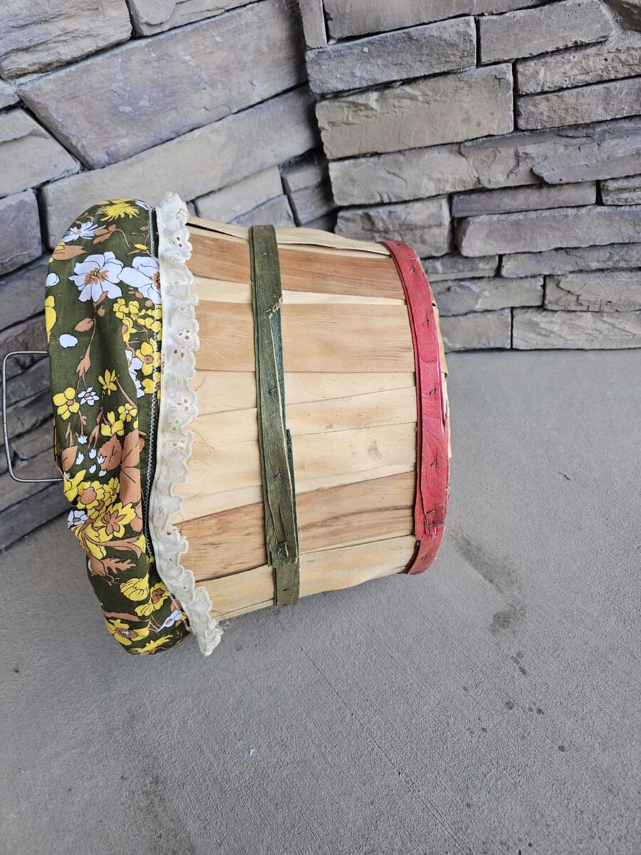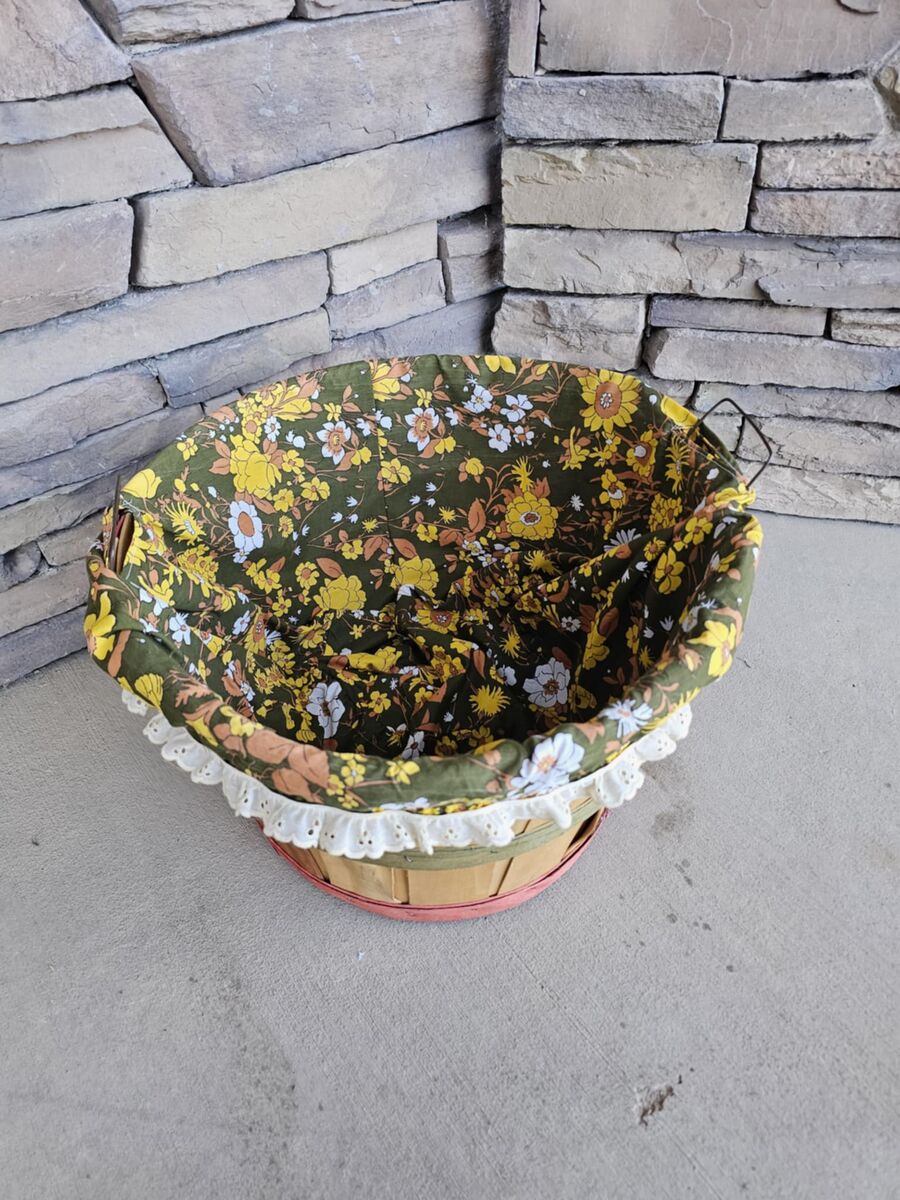 VenmoVintage Wooden Bushel Basket with Floral Fabric Liner