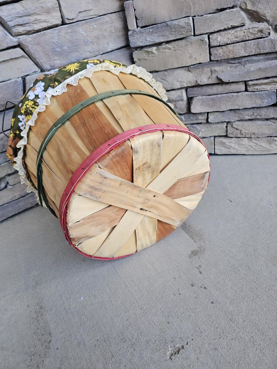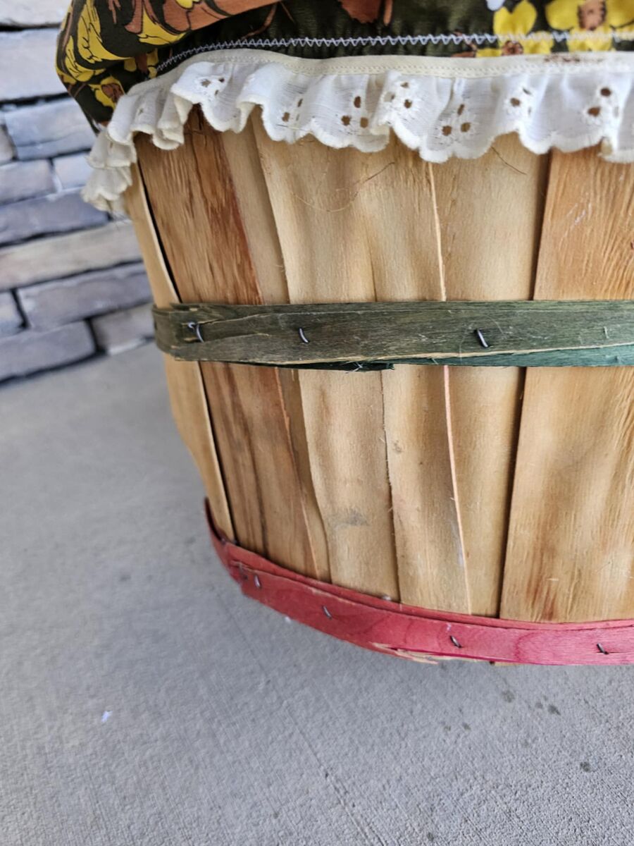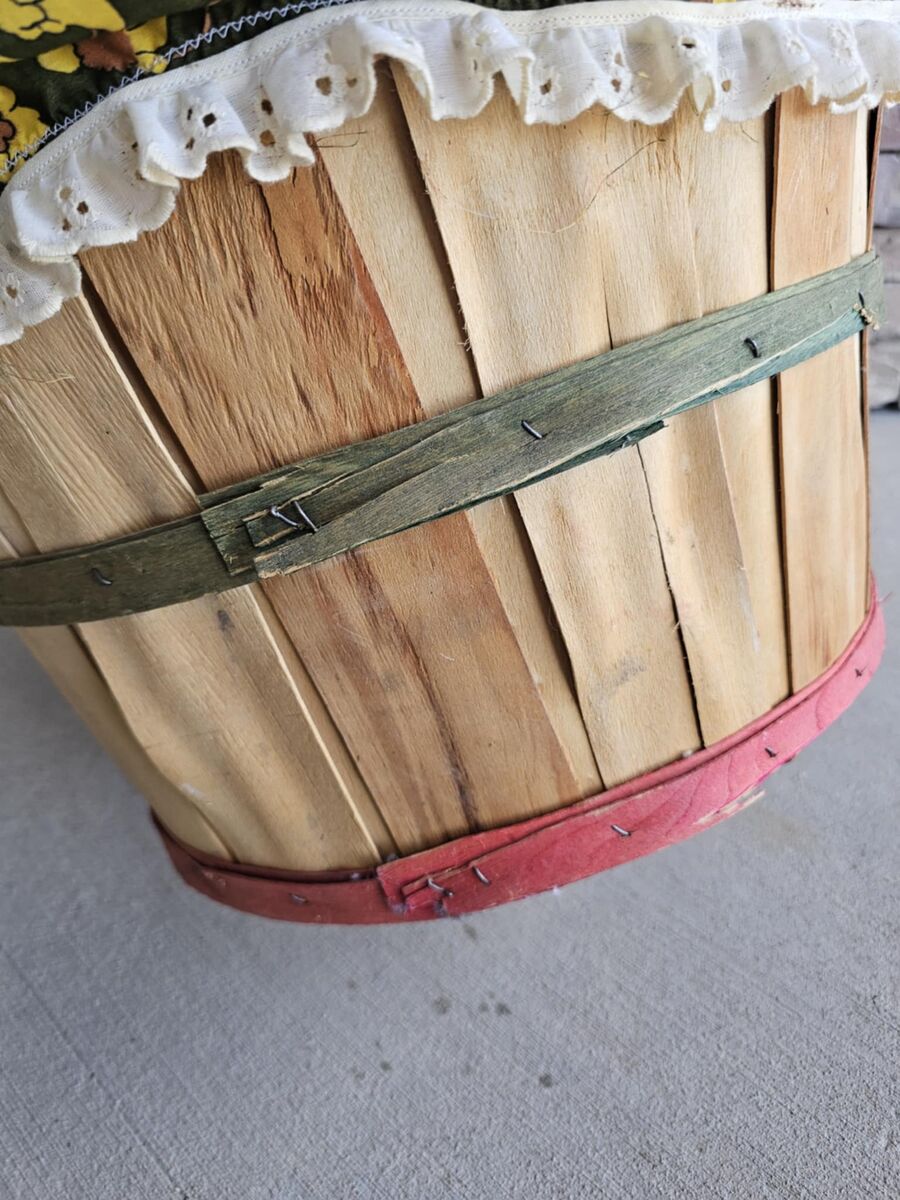 VenmoVintage Wooden Bushel Basket with Floral Fabric Liner