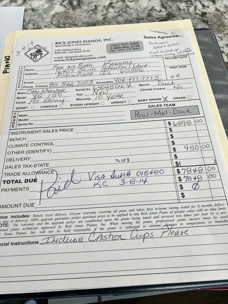 VenmoHigh gloss black baby grand Otto Meister XG 150 piano. This piano was rarely used and in near perfect condition. It includes the duet bench with storage under the lid.
