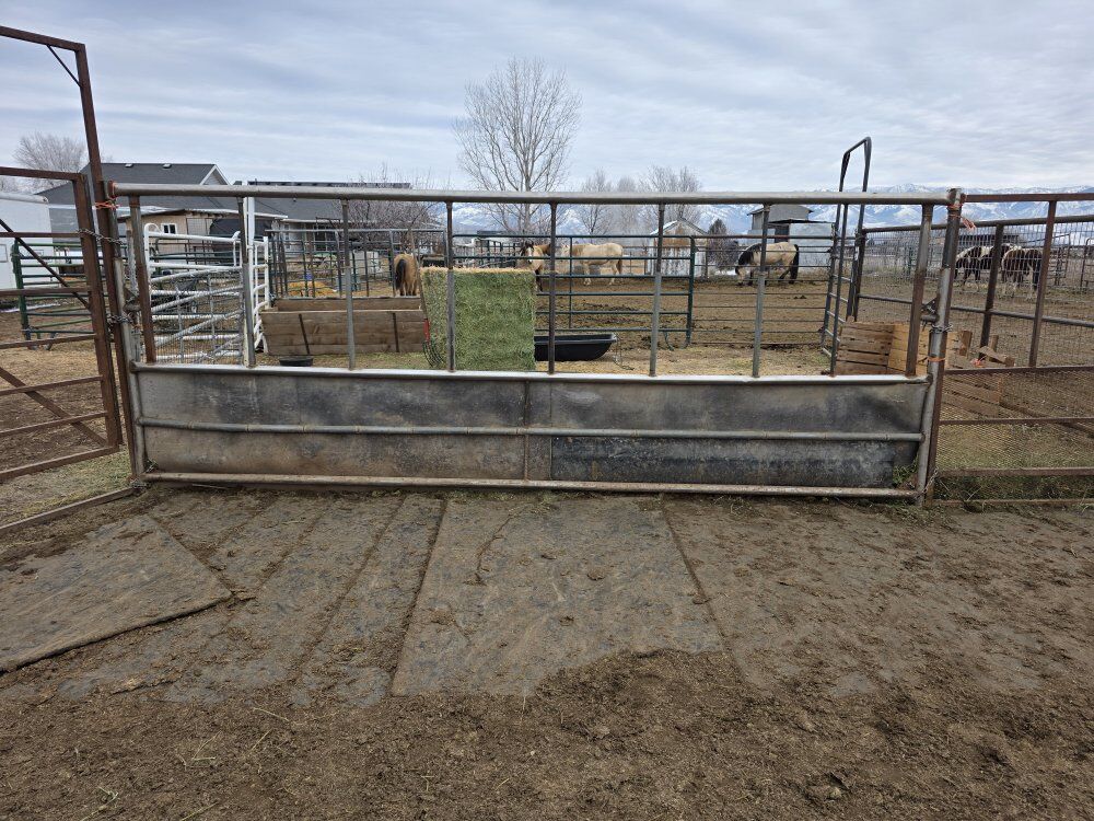 horse feeder Built out of stainless and galvanized steel pipe and tube super heavy duty. Chains on both top and bottom on both ends to chain to existing fences or panels. Has slots to feed up to 8 horses. Super easy to feed with this feeder no waisted hay. 14ft 10 in long 5ft 8inch tall 31in tall solid bottom 36 in tall opening 21in wide between spindals $750 obo