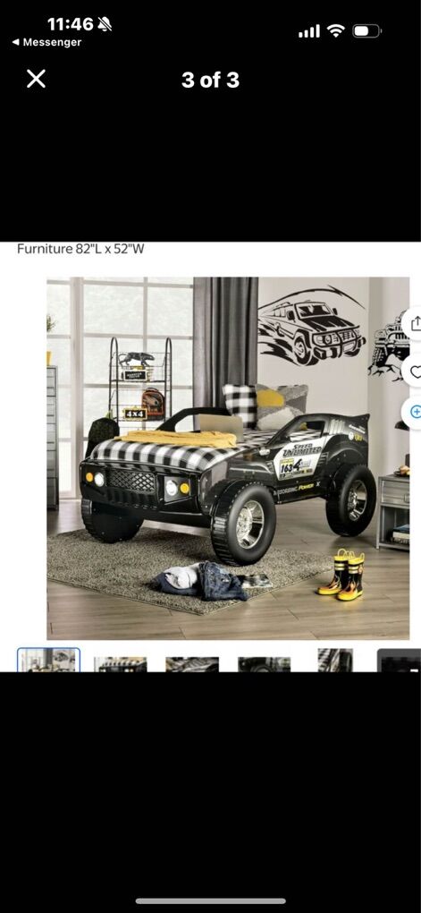 Only had it for a year basically brand new Does not come with twin mattress I’m 5-8 and I sleep comfortably on with my son I have it dissembled Also you can put batters in the front bumper for car noises ! Willing to deliver for right price