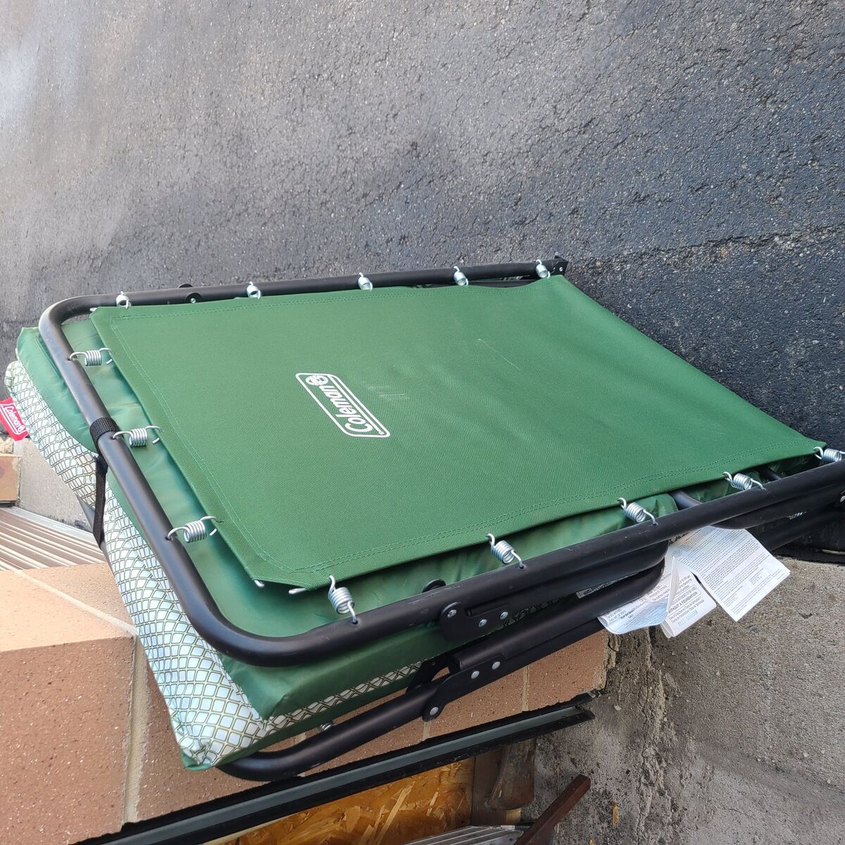 VenmoColeman camping cot with mattress pad. Spring loaded canvas design. Used one single time. $100 cash or Venmo. Delivery for full amount plus gas.