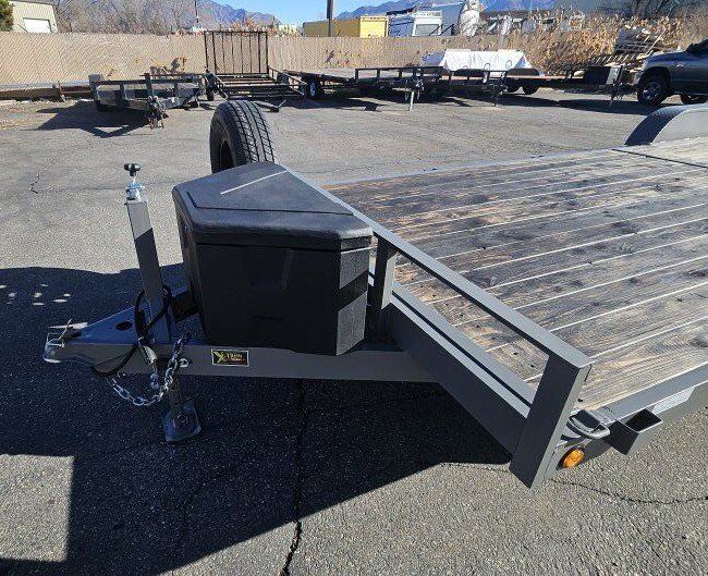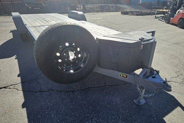 brand new toolbox spare tire underneath storage with loading ramps back stabilizing jacks 6 d-rings stained deck