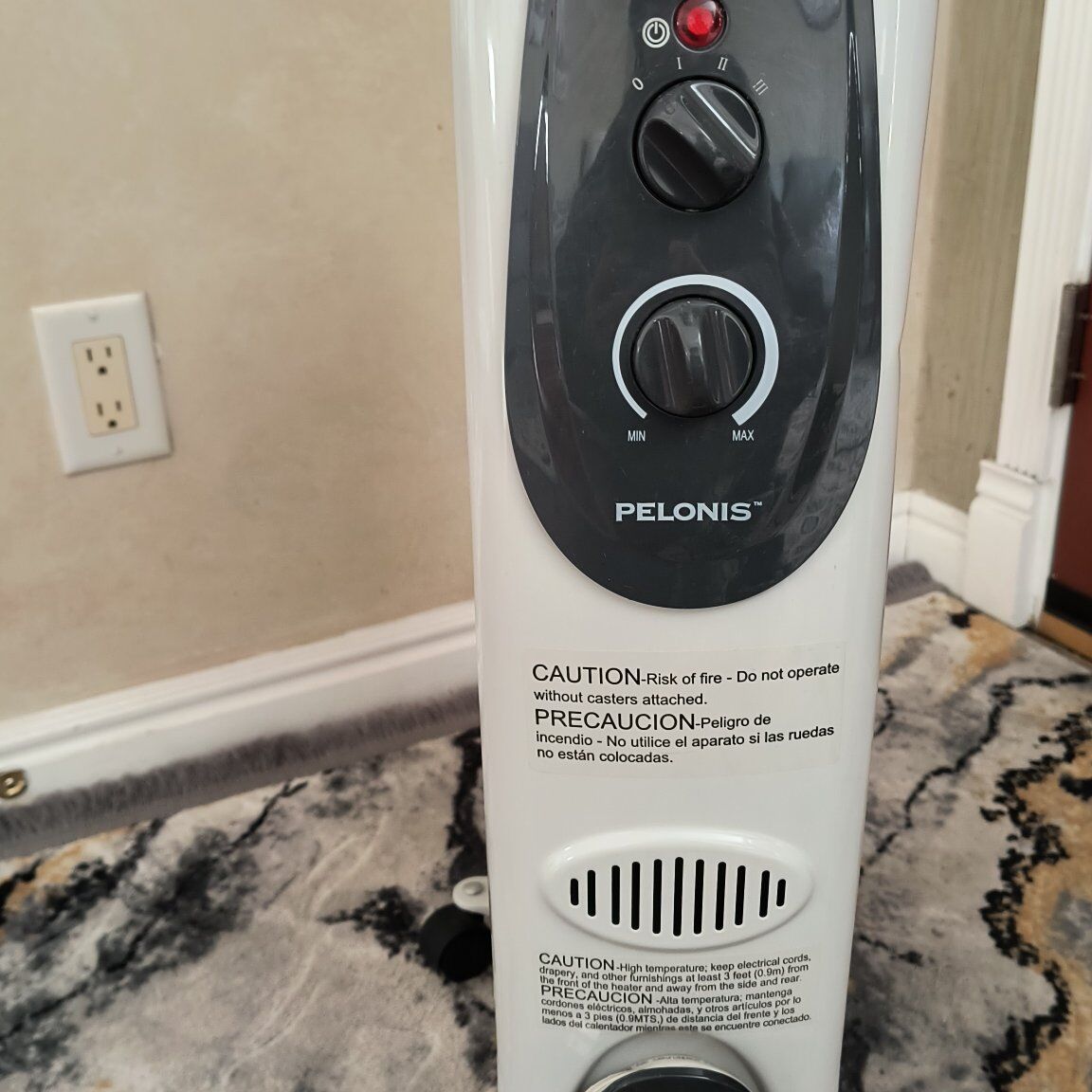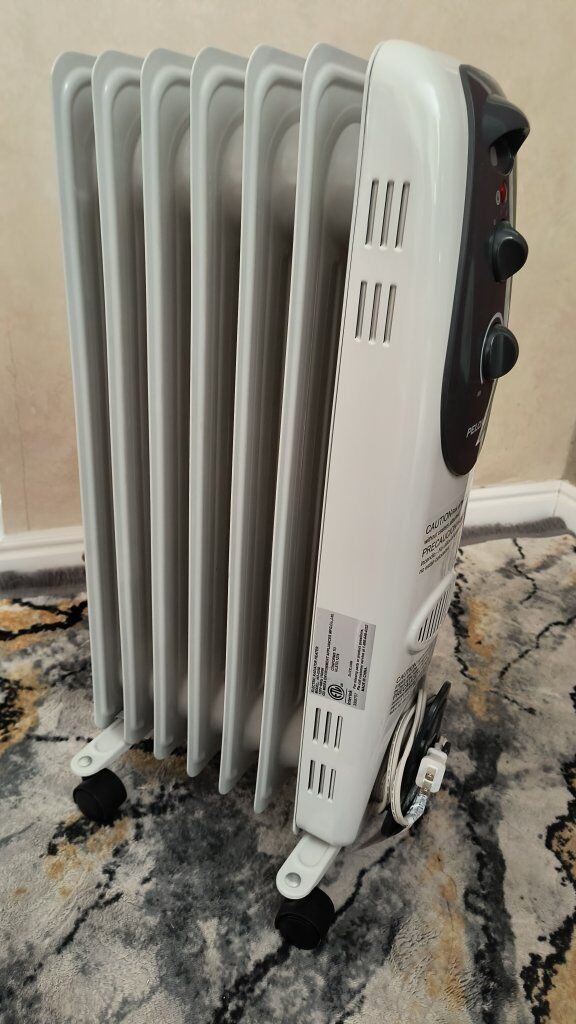 Pelonis Oil-Filled Radiant Electric Space Heater with Thermostat in good working condition.