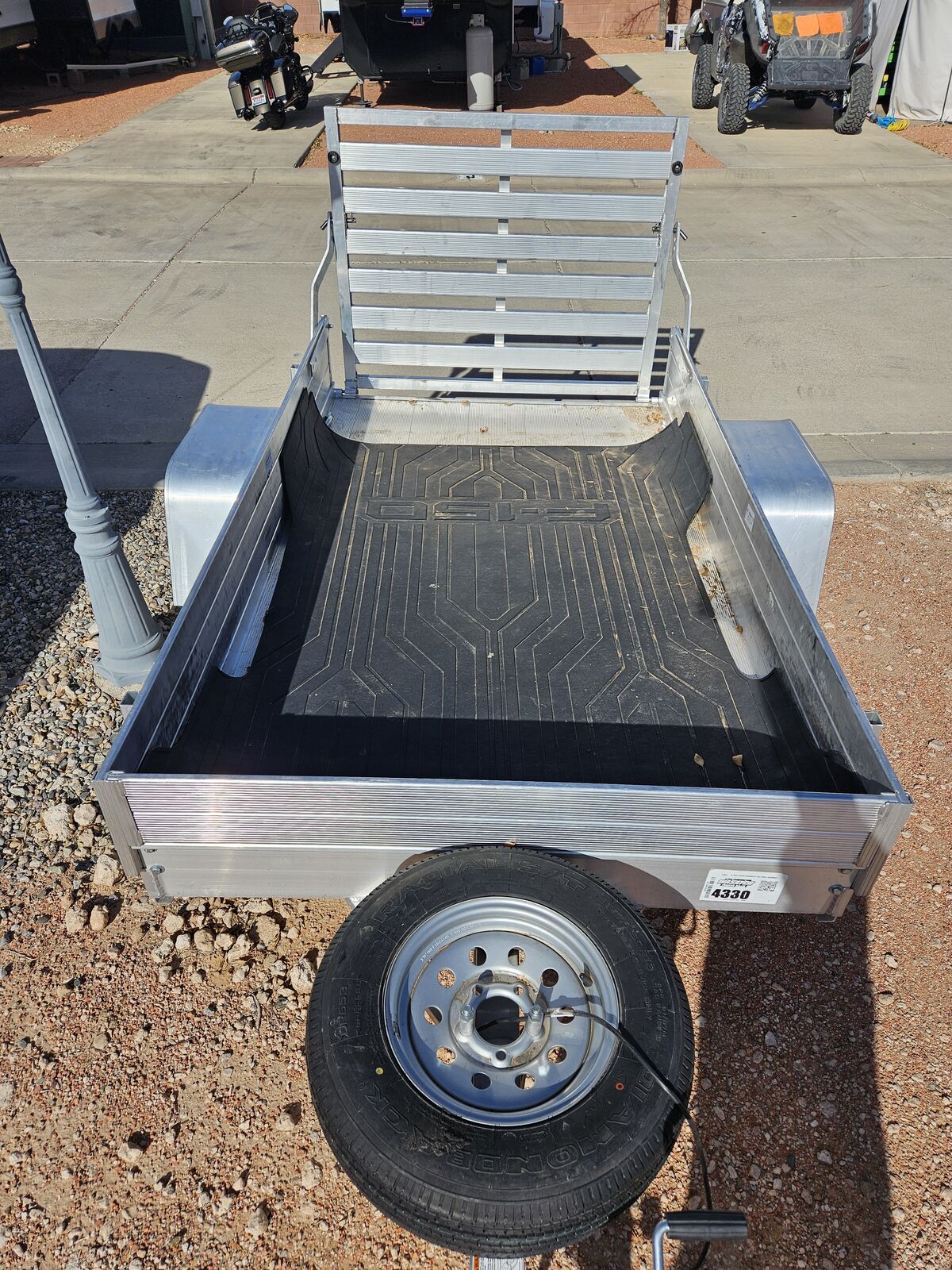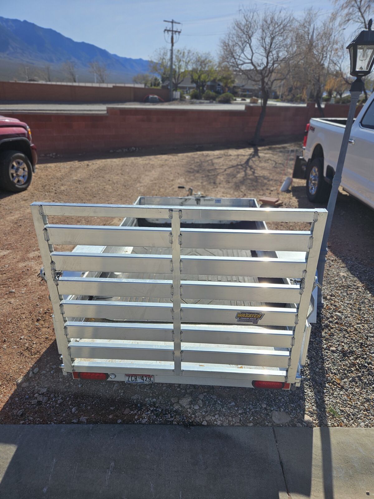 I bought this little trailer to use around the property. It's like new...comes with bracket and spare tire.. I'm pretty anal, so I put a bed mat in it do keep it from getting dented or damaged... Pulled maybe a thousand miles dimensions are 54X96... It has dropped down tailgate...torsion axle... I paid over $2500 new like this one is right at $3000 with spare...I'm asking $1800... Trailers in the saint george area now, but I go back and forth to idaho falls about once a month.We can figure it out if you want it ...this would be a great little trailer to haul you bike or 4 wheeler with a little SUV or pickup... Cash or cashiers check only...Thanks for looking jim two 08 68one 6943