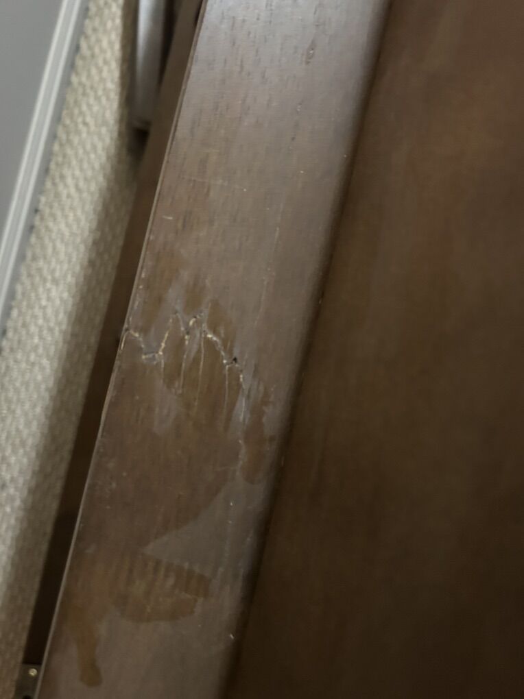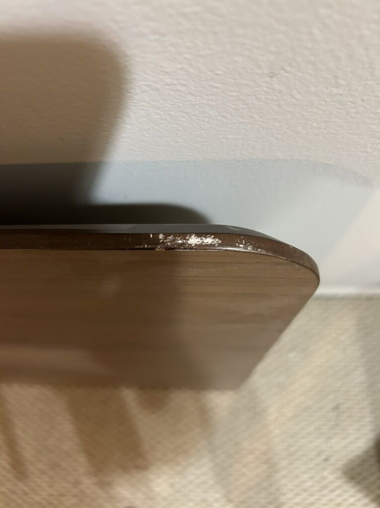 VenmoWooden dining table in fairly good shape. Has slight damage on edge. The support underneath has a crack, but has been repaired and strengthened. Table is strong and level. Pictures provided. Currently disassembled, but all pieces are accounted for and correct. Very easy assembly. Can assemble before purchase if desired. Dimensions: 71” long x 35.5” wide.