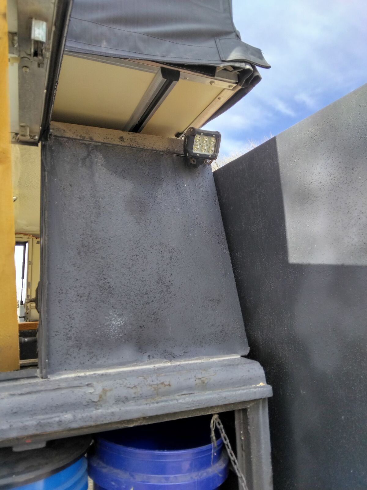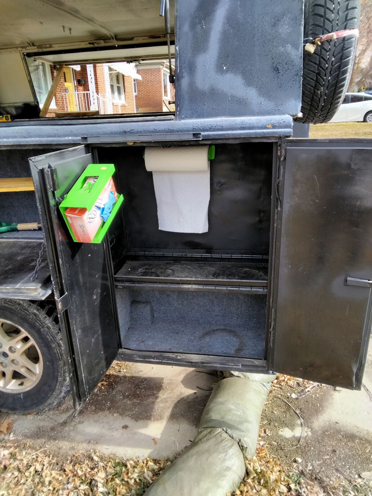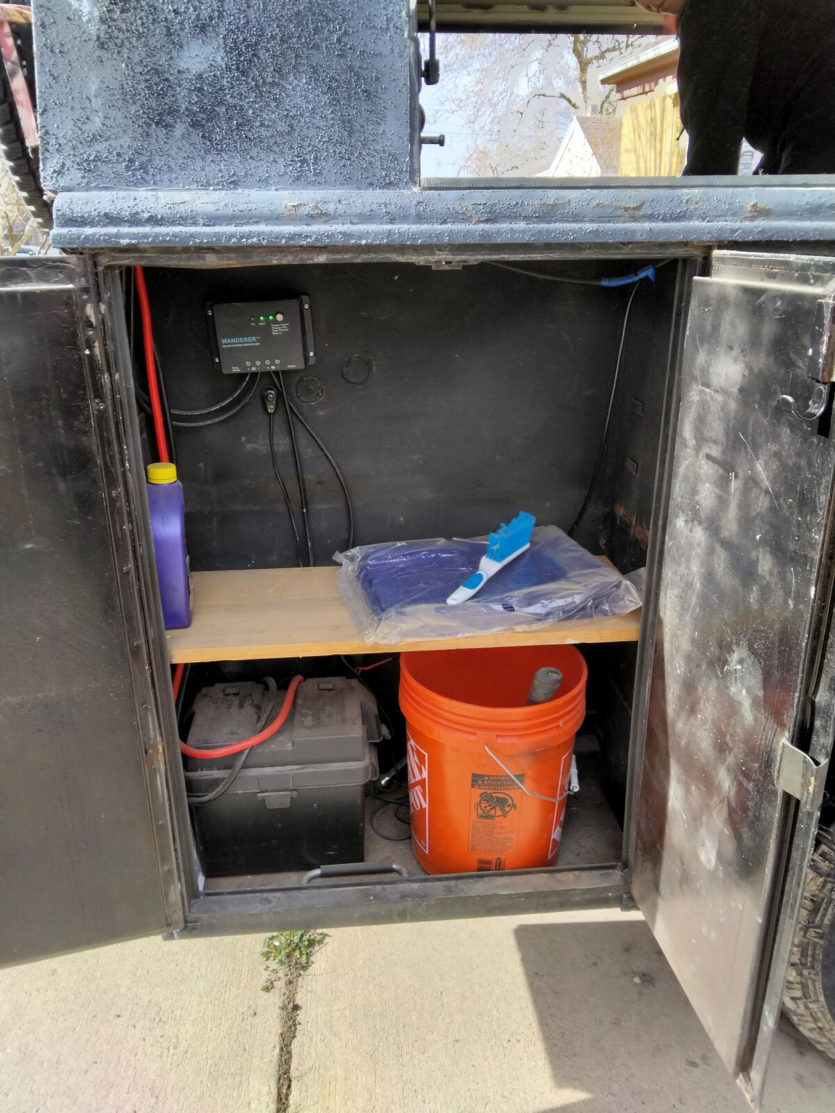 Off grid camper trailer has a king sized roof top tent with awning. Solar panel. TV. Propane tank and extra gas tank. Spare tire.