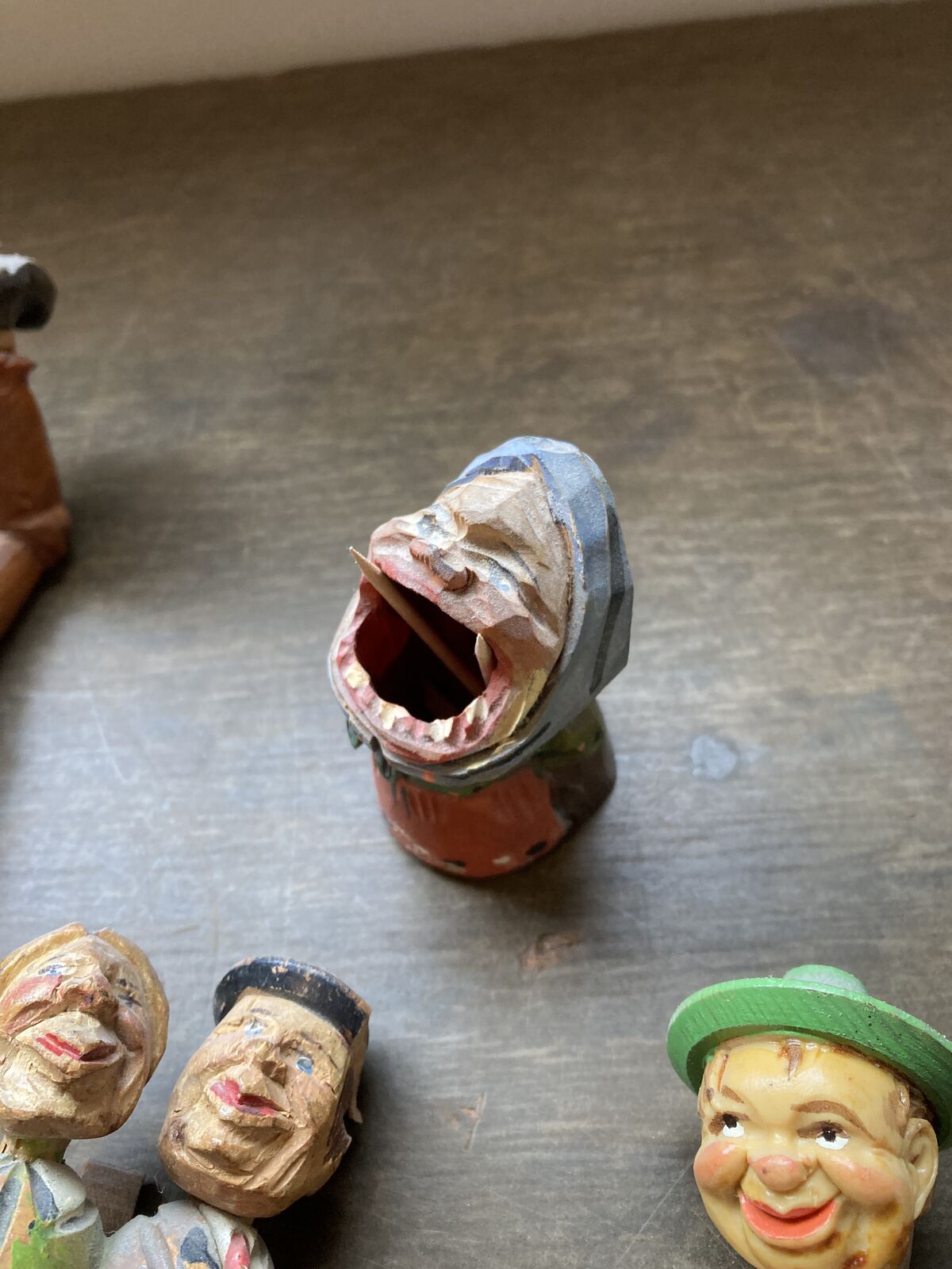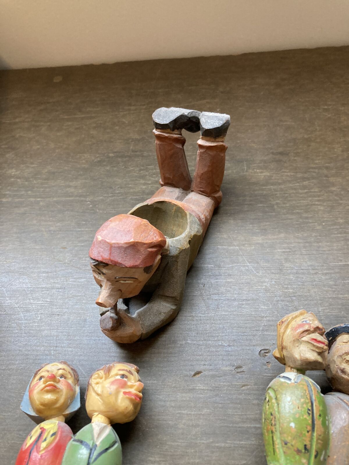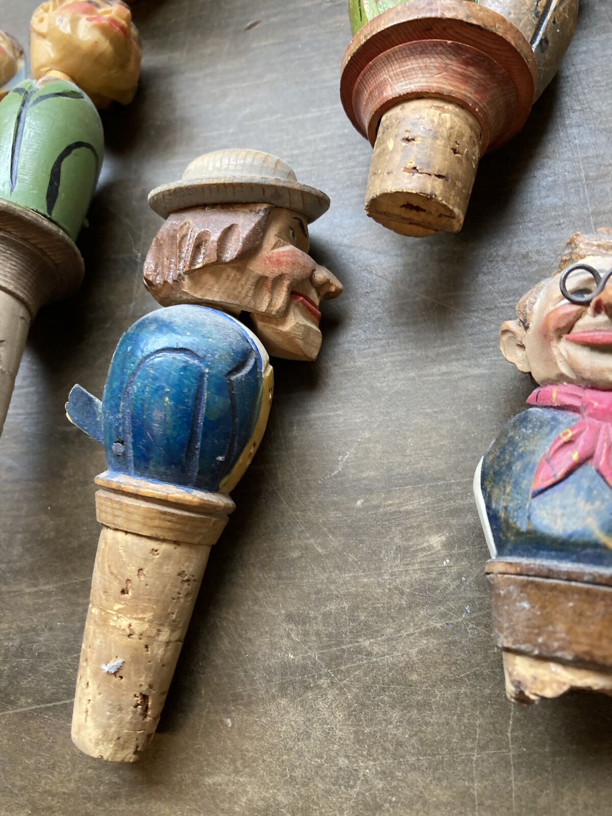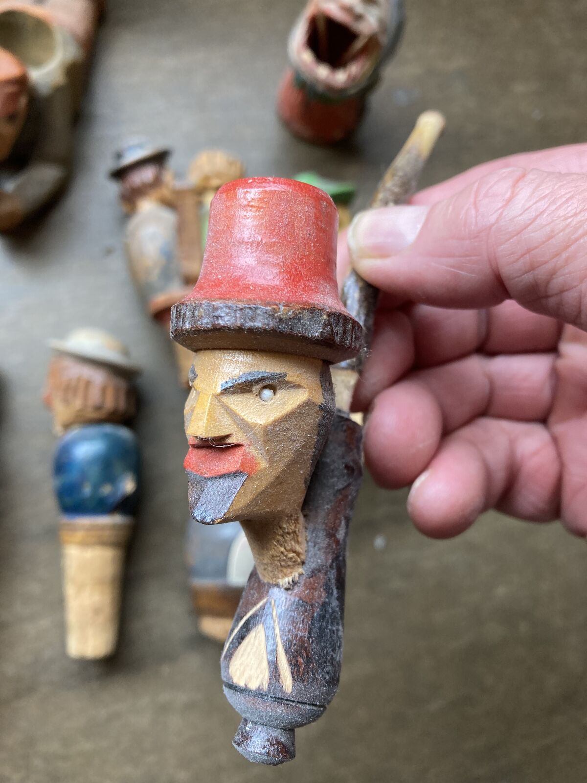 Antique and Vintage wine bottle stoppers and small wood carvings. All shown for $150 dollars.