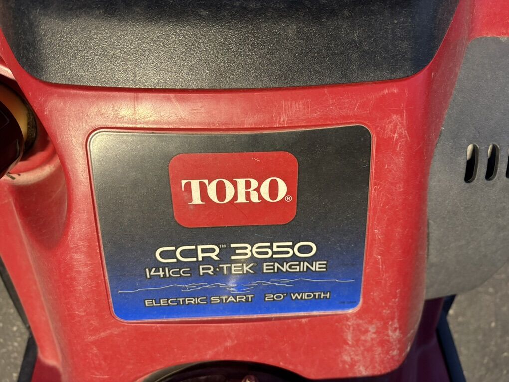 Pre-owned Toro CCR 3650 GTS single-stage snow blower in good working condition.
