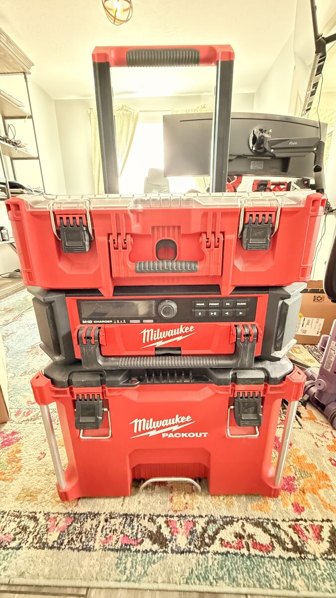 5 Large Demo Gloves 1 Large Impact Goatskin Leather Gloves Packout 22 Inch Rolling Low Profile Tool Box Packout 20 inch Small Parts Organizer Packout M18 Radio +Charger M18 Inflator M12 3/8 Crown Stapler M12 3/8 Ratchet M18 7 1/4 Circular Saw M12 Planer M12 Oscillating Tool M18 Sander M12 Hammer Drill M12 Cut Off Tool M18 Surge 1/4 Driver M12 1/4 Impact Driver 3 M12 2.0 Batteries 1 M12 2.5 Battery 2 M12 4.0 Battery 1 M12 5.0 Battery 1 M18 12.0 Battery 2 M18 5.0 Batteries Purchased Seperately about 4k worth of tools, selling as a bundle for 1500.00