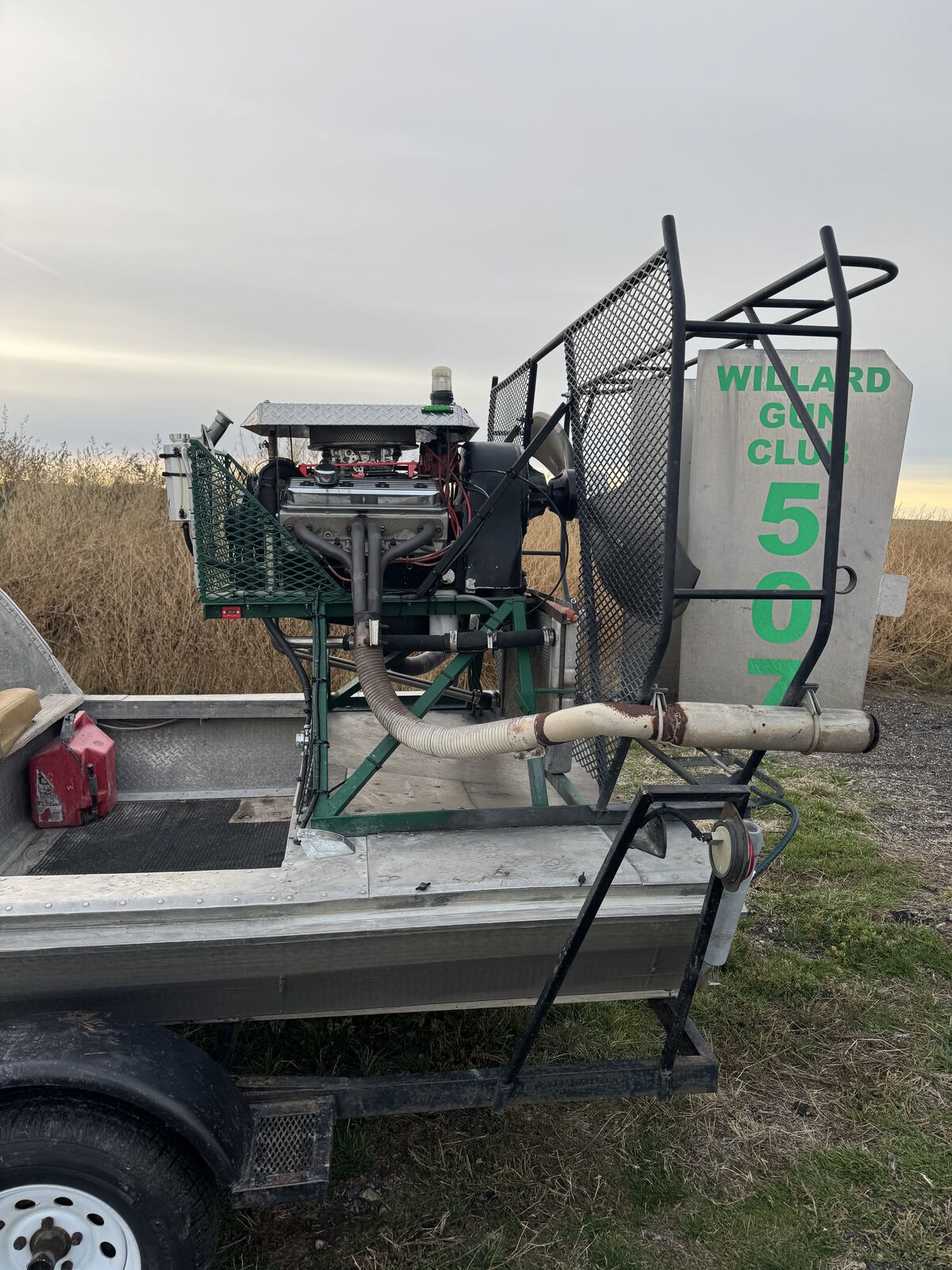 16' Airboat with 383 Stroker engine, whirlwind carbon fiber prop. All new wiring and gauges. Engine was rebuilt last year and runs strong.