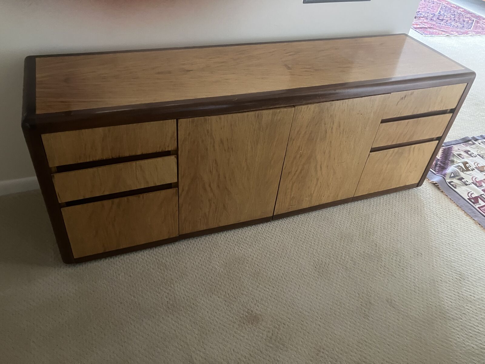 VenmoDesk has wood top with chrome base. 72" W, 38"D, 28.5"H