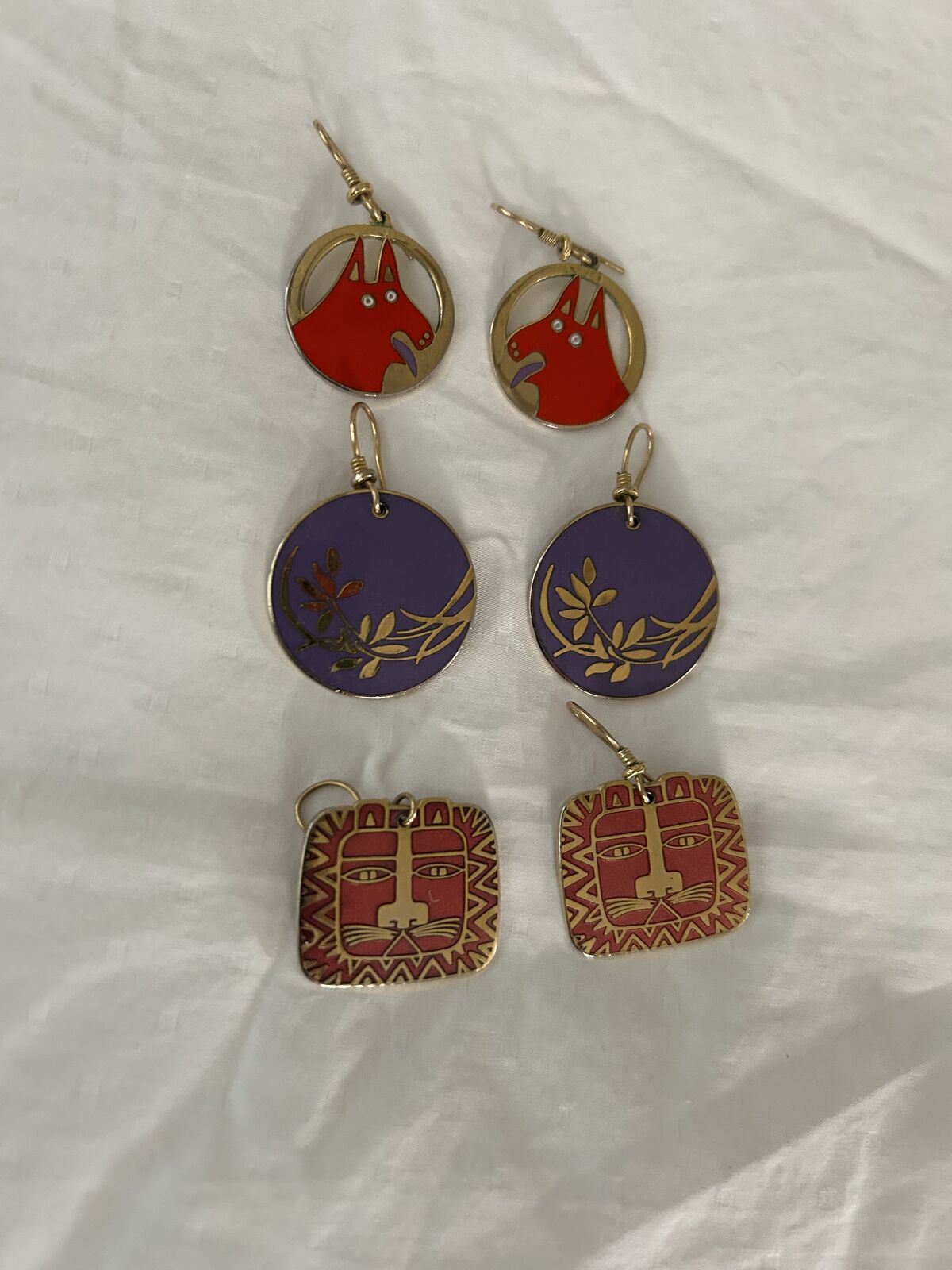 VenmoVintage Laurel Burch earrings, enamel on all sets in beautiful condition. Cat Spirit, Basso, & Wind Flower. Buy all three sets for $50, or $20 a set. Please see more by seller for many vintage/collectible items, downsizing.