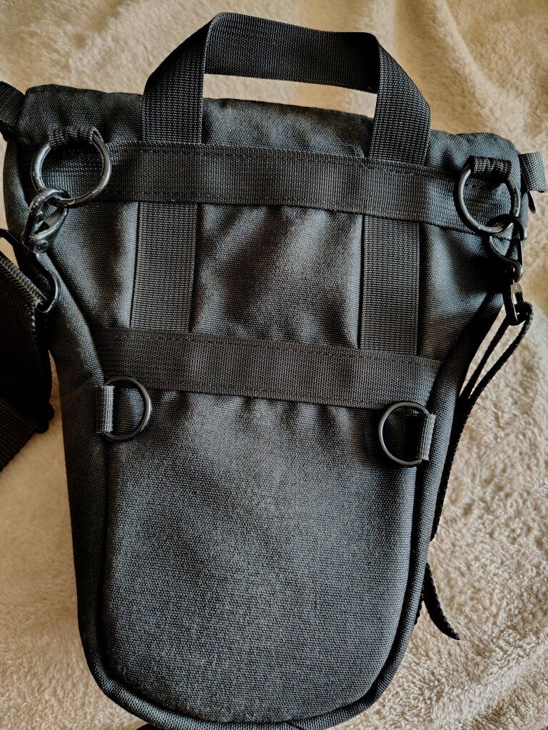 This classic Tamrac 517 camera bag can hold an SLR, DSLR, or mirrorless camera with a zoom lens. It can also hold a camera with a shorter lens and another lens in the bottom of the bag. Great for day use when you don't want to lug a giant bag around. It's in good condition.