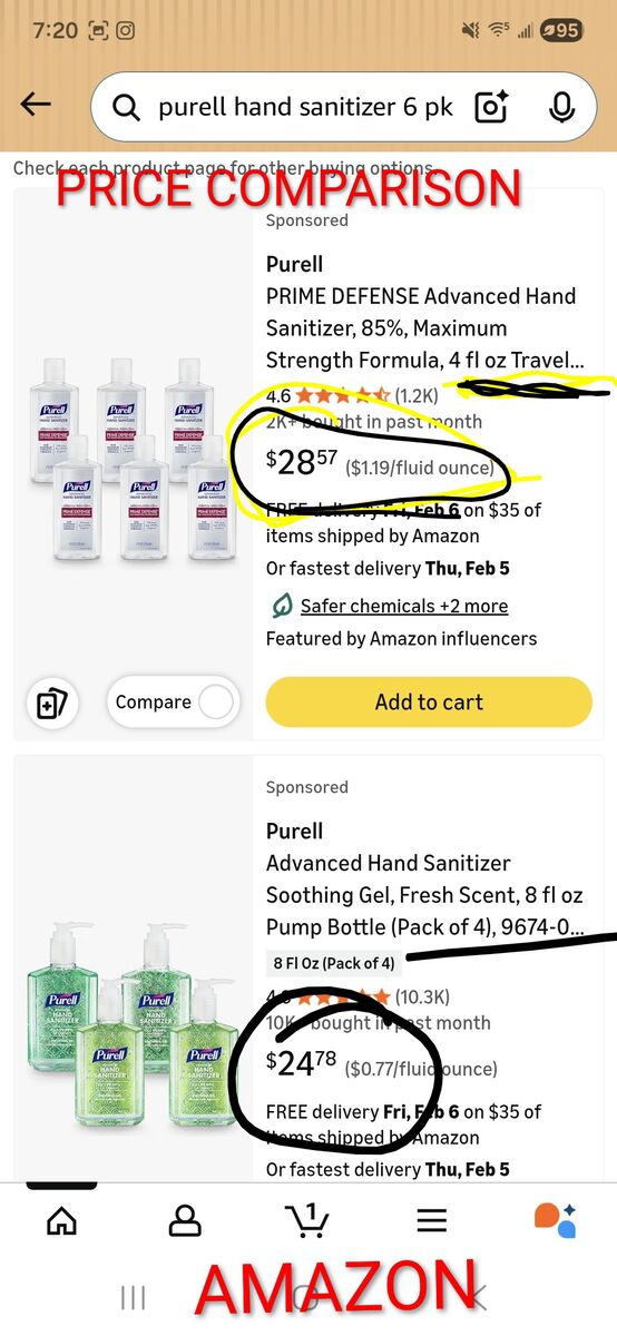 PayPalPurell 6 pk bundle hand sanitizer advanced $15.00. ( photo added for price comparison)