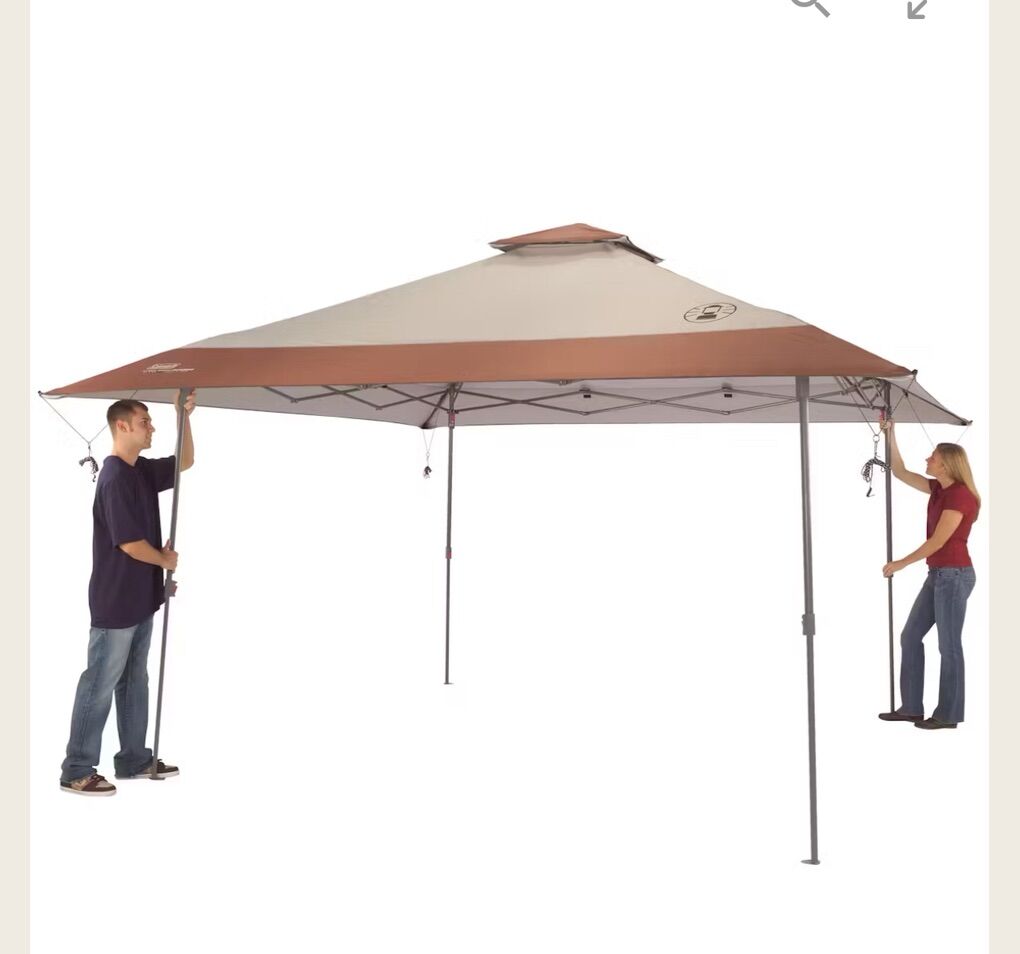 VenmoNEW COLEMAN 13 x 13 Instant Canopy Sun Shelter, Khaki Set up the 13 x 13 Canopy Sun Shelter in as fast as 3 minutes and get to the fun faster. The canopy is made of UVGuard™ material for UPF 50+ protection from the sun's dangerous rays, and wide eaves extend past the shelter's 169-square-foot area for extra coverage. UVGuard™ material offers UPF 50+ sun protection Instant setup in as fast as 3 minutes Comfort Grip™ technology locks shelter into place for pinch-free pole extending Overhanging eaves offer more shade area with a smaller footprint Vented roof releases trapped heat 1-piece frame folds down for compact storage Dimensions: 13 x 13 ft Coverage area: 169 sq. ft Center height: 9 ft. 7 in