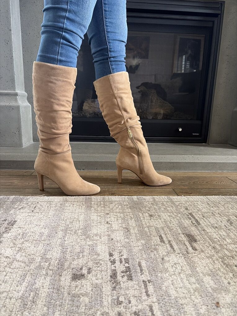 Tan Swede, size 7 M, 3 inch heels New! worn 1 time Regular price is $250