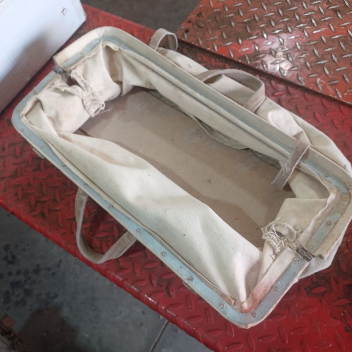 Made with canvas, leather and metal frame. $20 dollars.
