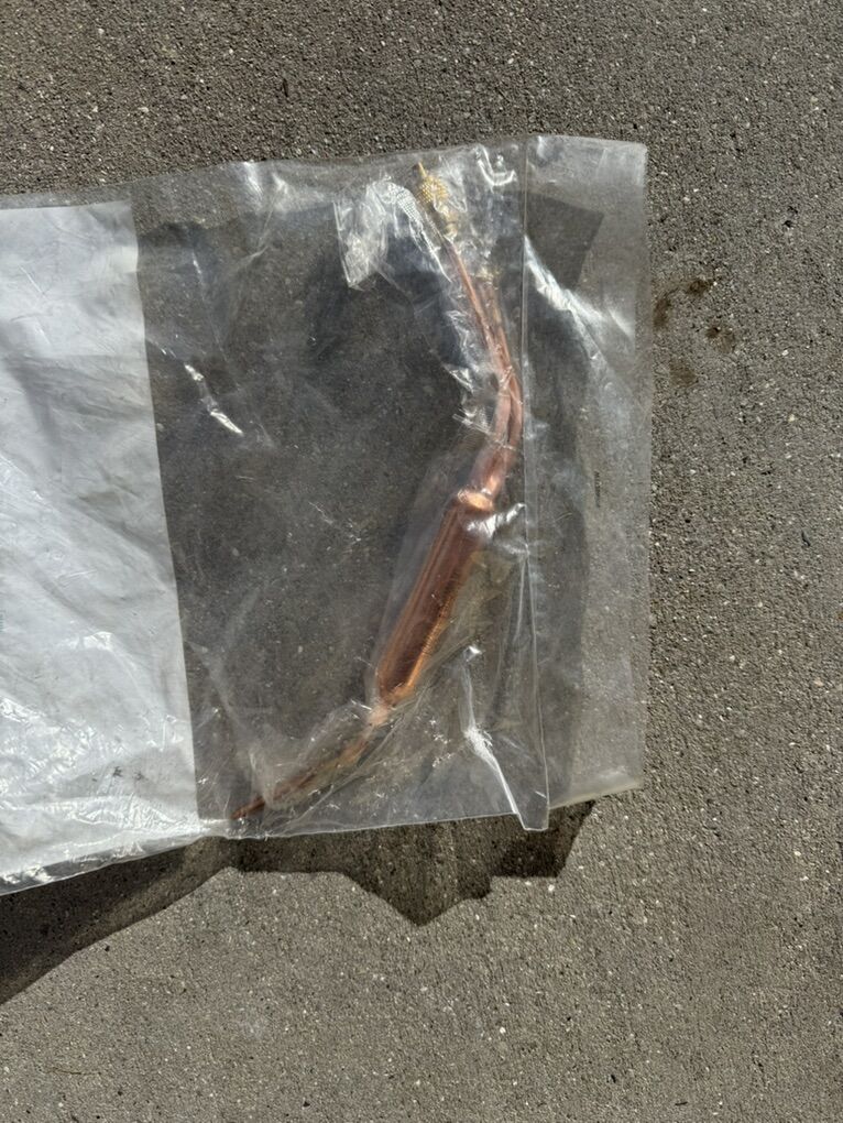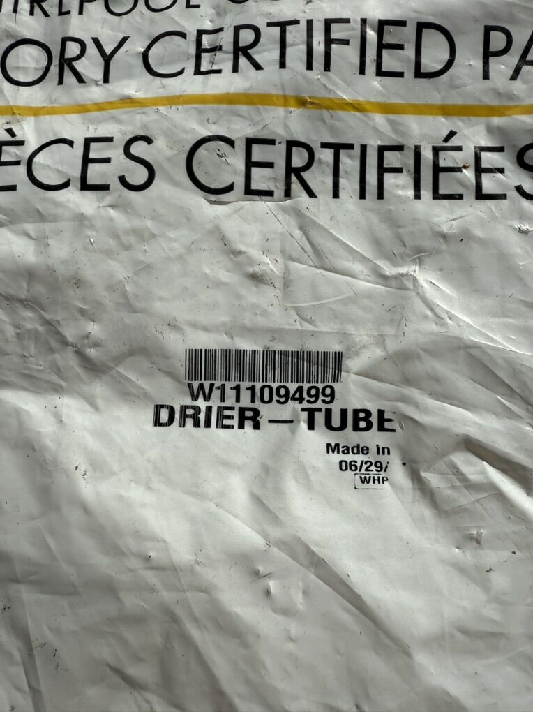 New drier tube for Whirlpool appliance. Still sealed in original packaging. Copper tube with brass fittings.