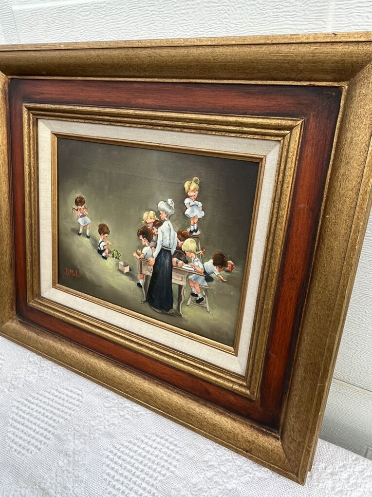 This is the cutest painting, done in an illustrator style. Signed by D. Milo. Painting measures 11 1/2 x 8 1/2, overall with frame measures 20 x 17. Pick up in River Heights, Cash preferred.