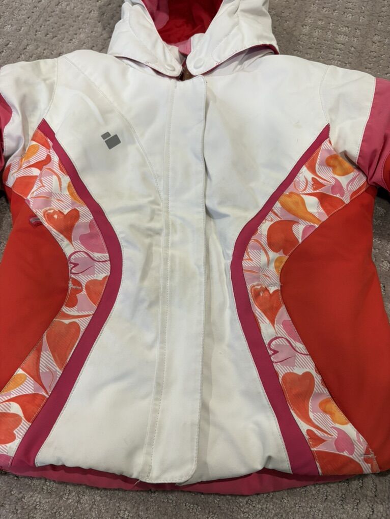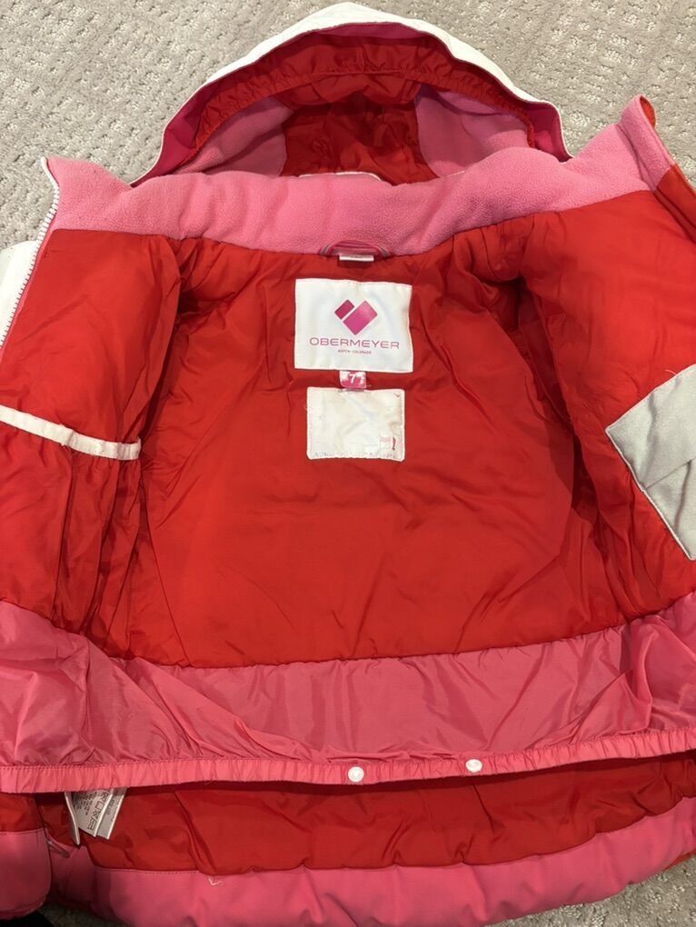 VenmoGirls Obermeyer ski bibs and matching coat. Some small stains, which I tried to show pics. Coat has removable hood.