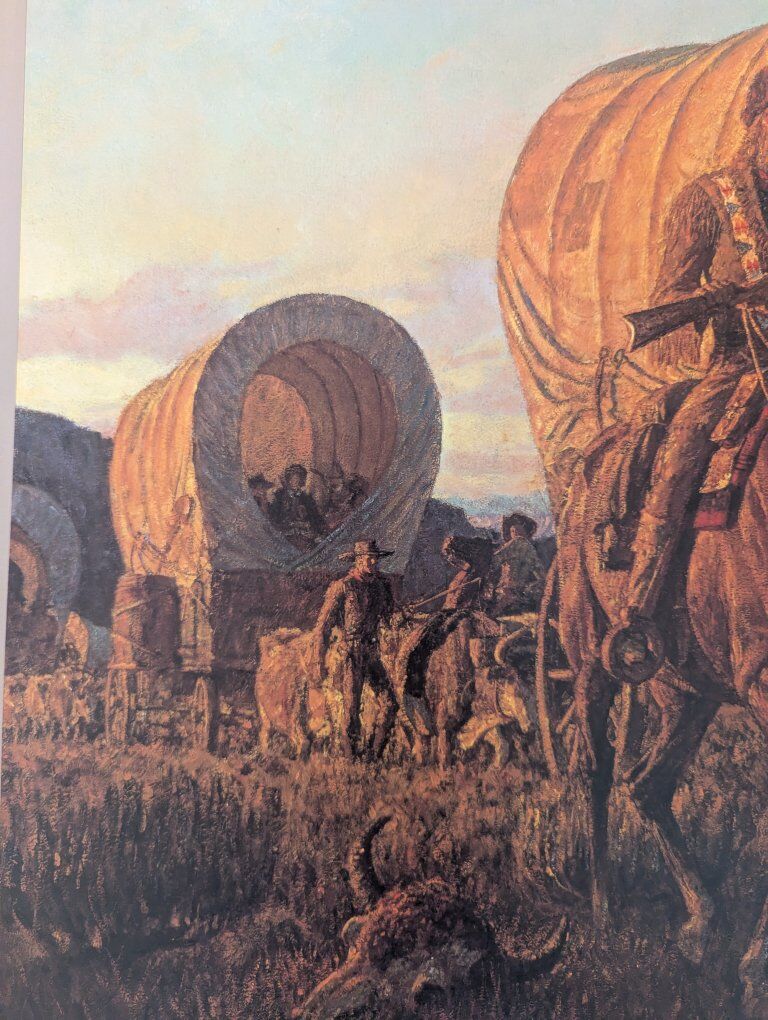 Arnold Friberg is one of the most recognizable American illustrators of the twentieth century and has a strong Utah connection. He lived and worked in Utah for many years and is best known for his iconic Book of Mormon paintings as well as his dramatic artwork for Cecil B DeMille’s The Ten Commandments. His Western scenes like this one are especially sought after in the Intermountain West.