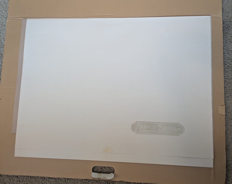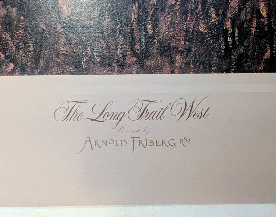 GooglePayOriginal limited edition print by Arnold Friberg titled The Long Trail West. Hand signed and numbered 1140 of 1500. Measures 34.25 x 22.5 inches. Includes original certificate of authenticity and matching edition label.
