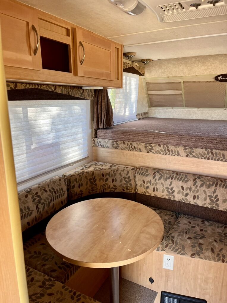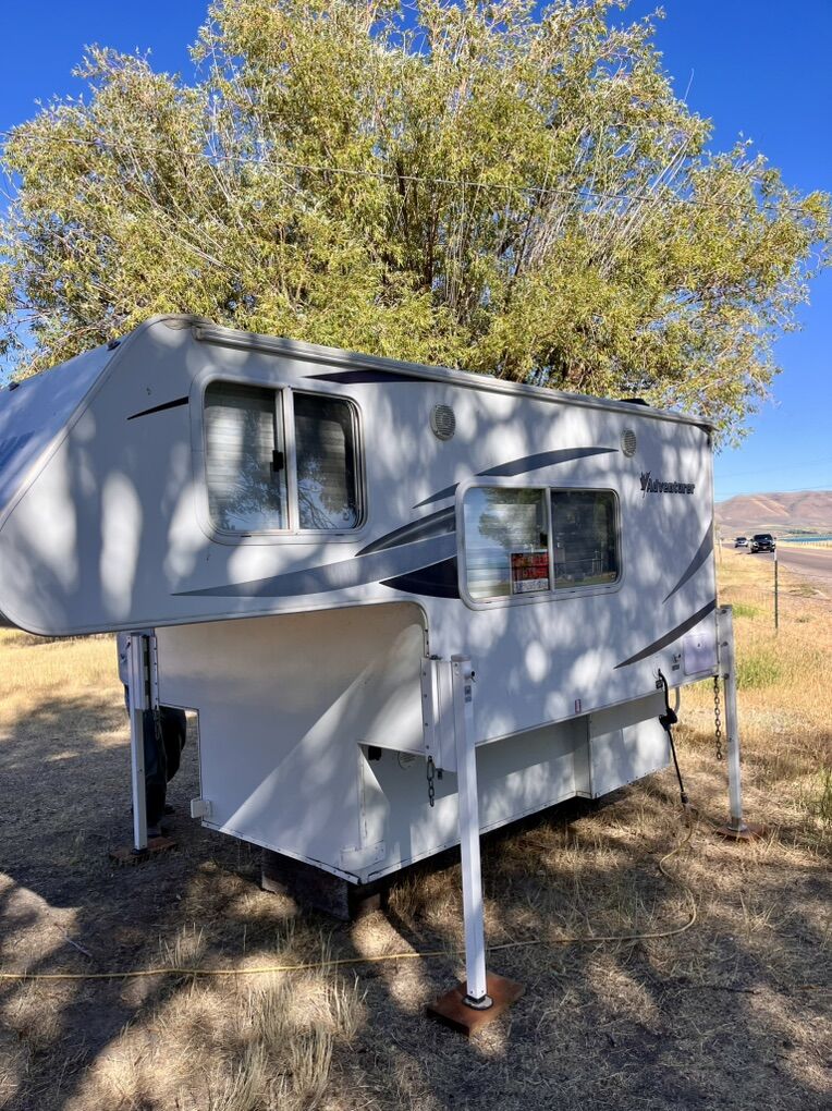 2012 Adventurer Truck Camper. Made for 8 foot bed or 6 foot bed with tailgate town. Can be hauled with 1/2 pick up. Good condition. Everthing works well. AC, water heater, fridge. Propane furnace. Manual Jacks. $11,000 obo