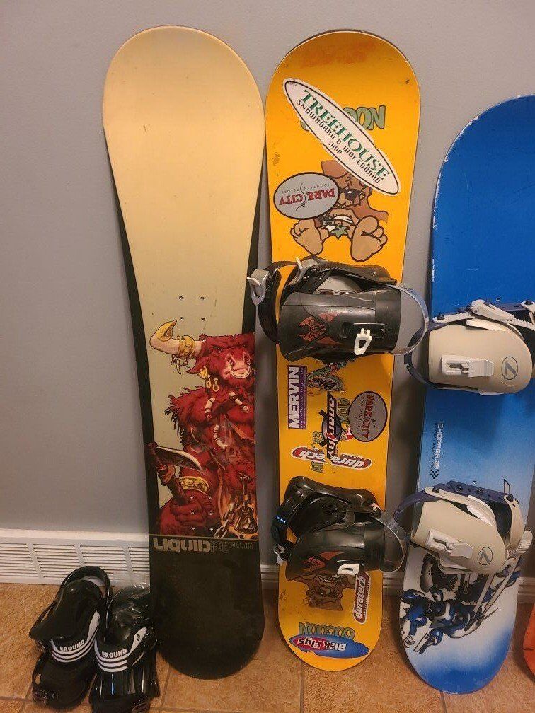snowboards and bindings. each snowboard will include used bindings for $120 or we can swap to brand new, never mounted, never used bindings instead for $150