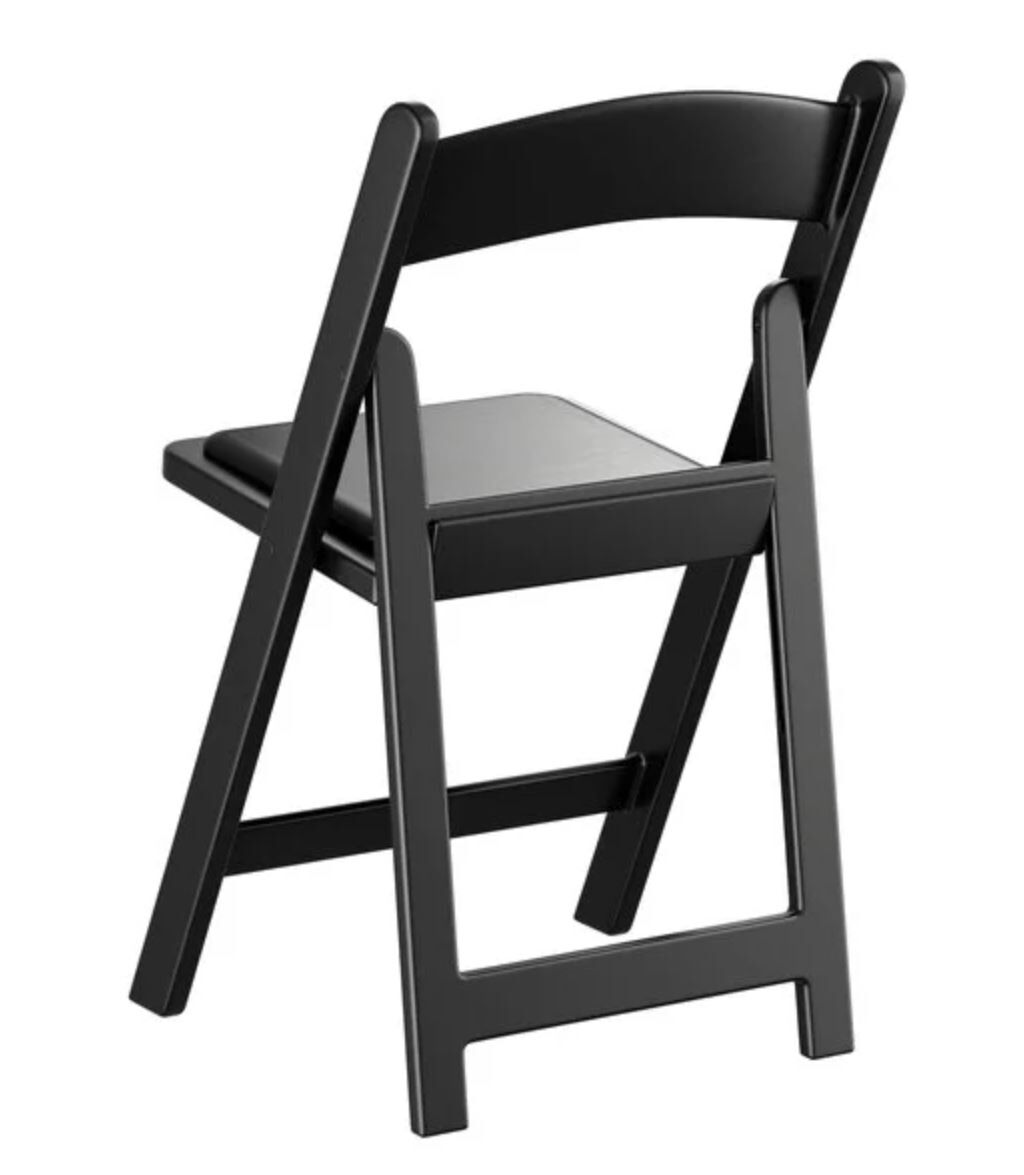 Zelle84 Chairs - Brand new in the box - never opened. We over ordered for our event center. See this same chair on Webstraunt and other suppliers. New is $24.49 @ minimum of 4 per order, since they come in 4 per box from manufacturer. See picture. We have 21 boxes - never opened. Total of 84 chairs. Must be bought in lots of 4 @ $24/chair or $96 per box of 4. This model's black resin finish adds style and class to any backyard barbeque, formal banquet, or wedding. Guests will feel comfortable for hours, thanks to the chair's vinyl padded seat. Plus, its durable polypropylene design ensures it can stand up to both indoor and outdoor use for added versatility, making it ideal for your business. Durable Construction This chair is light weight for quick and easy transportation, yet still extremely durable for everyday use. It's UV-resistant and treated to prevent aging, making it last for years to come. Foldable Design Additionally, the chair's smooth surface makes it easy to clean. This chair is also portable and foldable for optimal transport. Invest in a chair that will last through the climate, weather, and time with ease! Width: 17in. Depth 18 in. Ht. 31 in. Capacity: 250 lbs