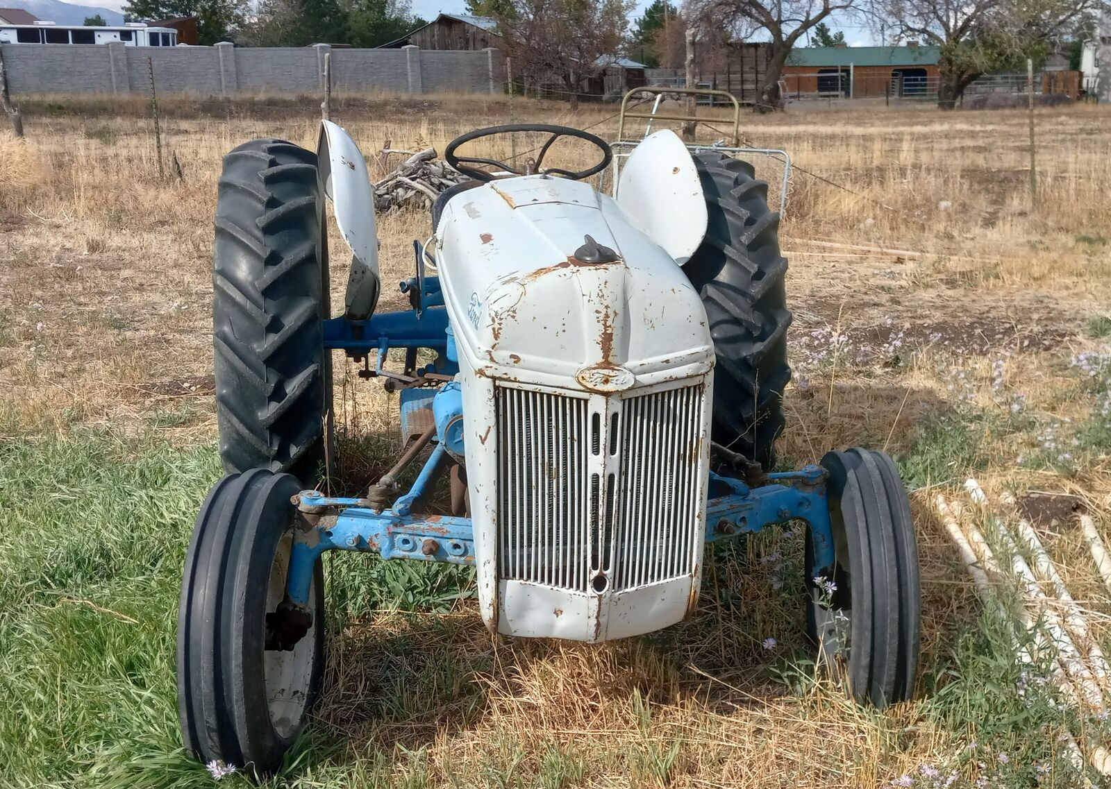 1940's Ford Tractor + (3) Implements For Sale (plow, blade, harrow). Last ran 2022.