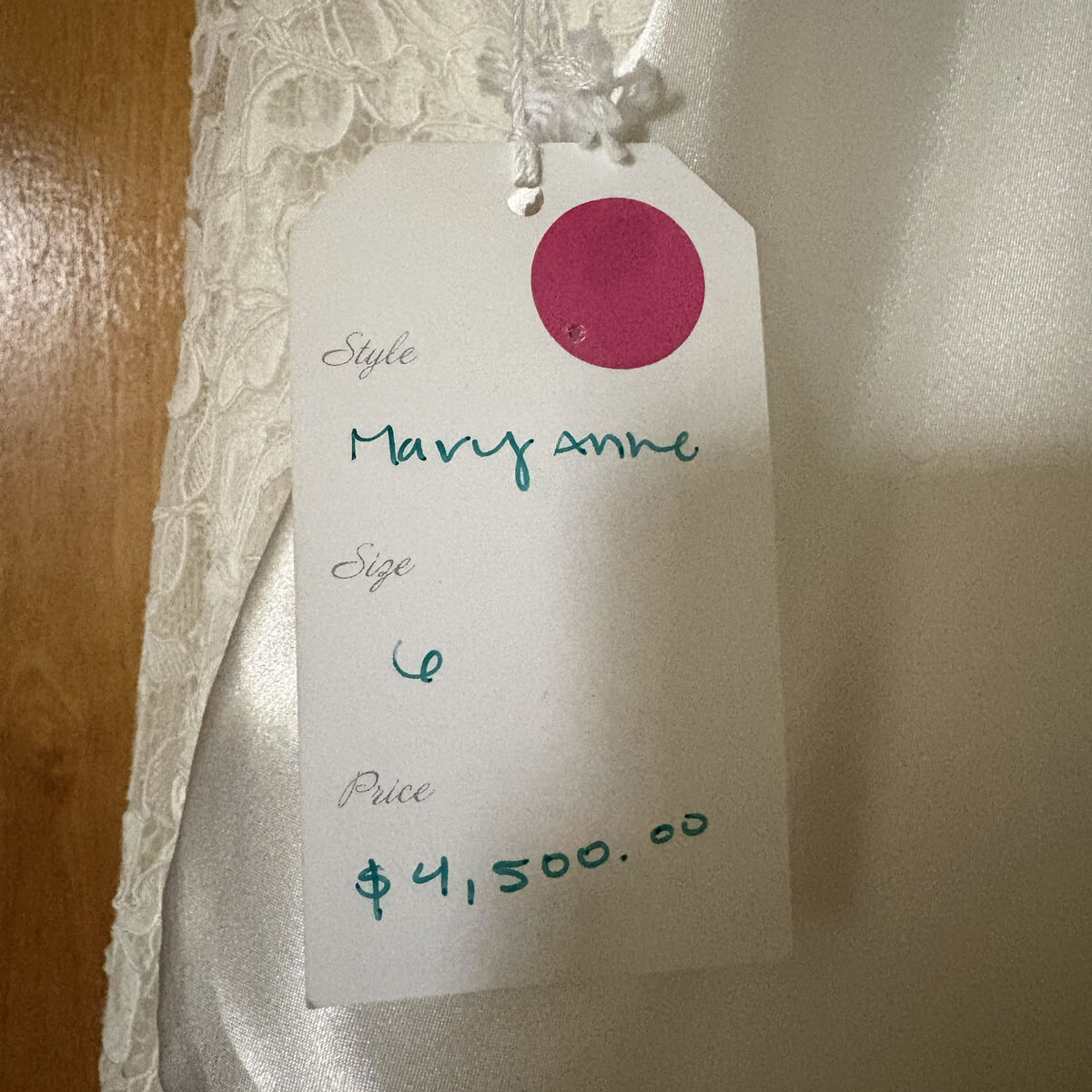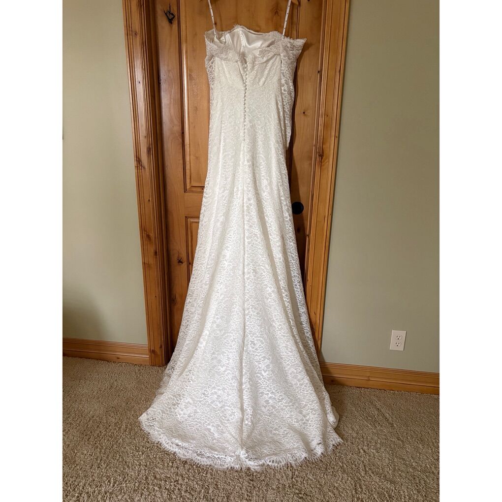This dress was purchased off the rack and never worn for a wedding. It is in excellent condition and ready for its bride. Originally priced at $4,500, now offered for $1,800 - a rare opportunity to own a luxury gown at a significant savings.\