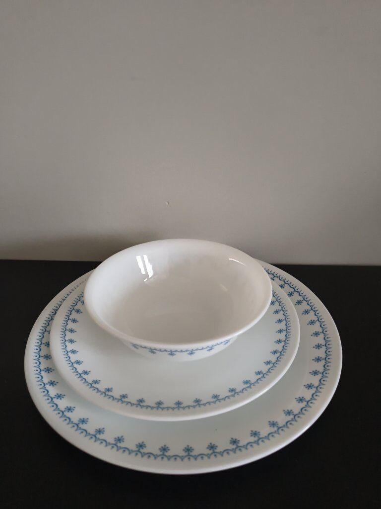 Corelle vintage 24 pieces dinner plates, soup bowls, fruit or dessert plates, $75.00 cash.