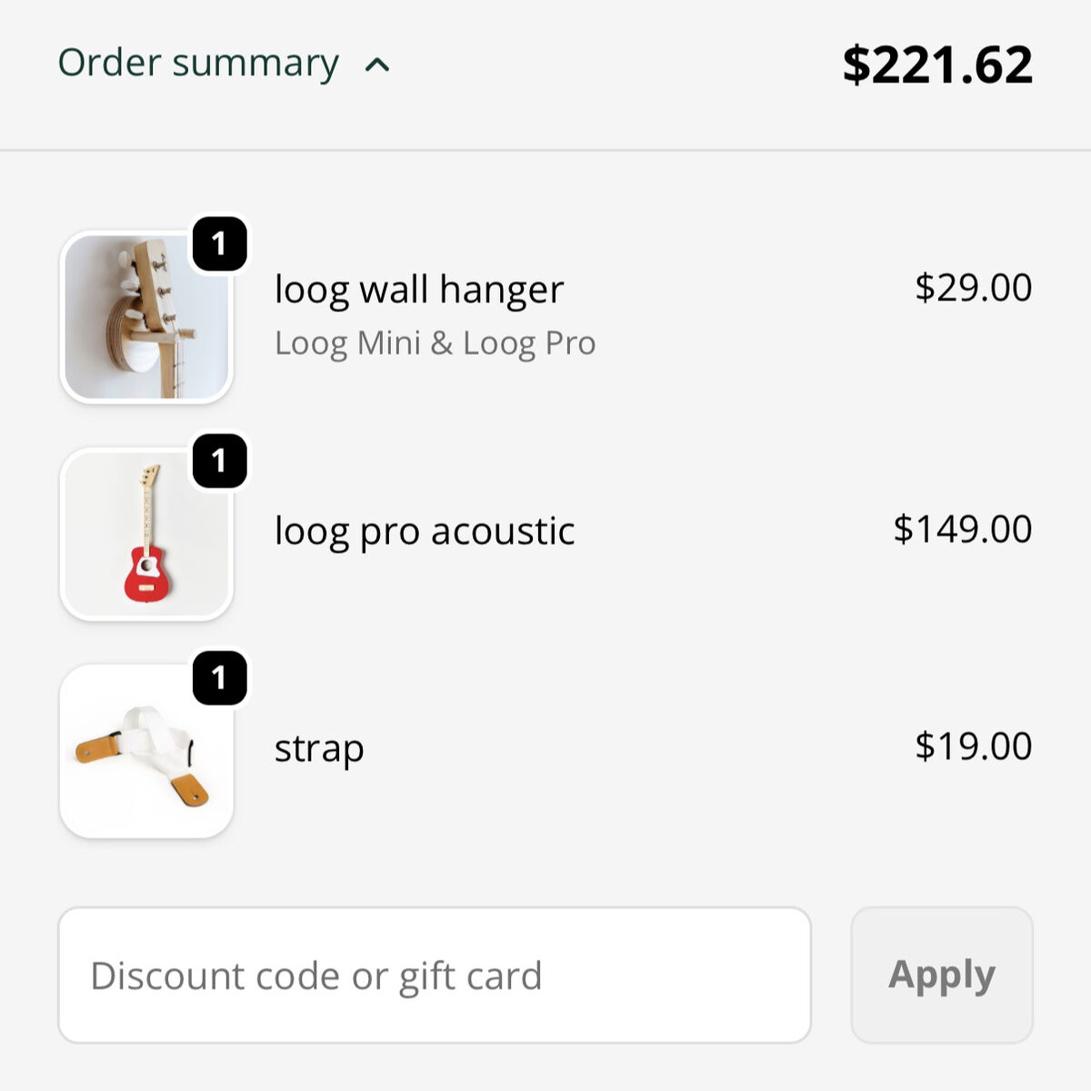 Loog pro 3 string acoustic guitar Strap Wall hanger Book and flashcards